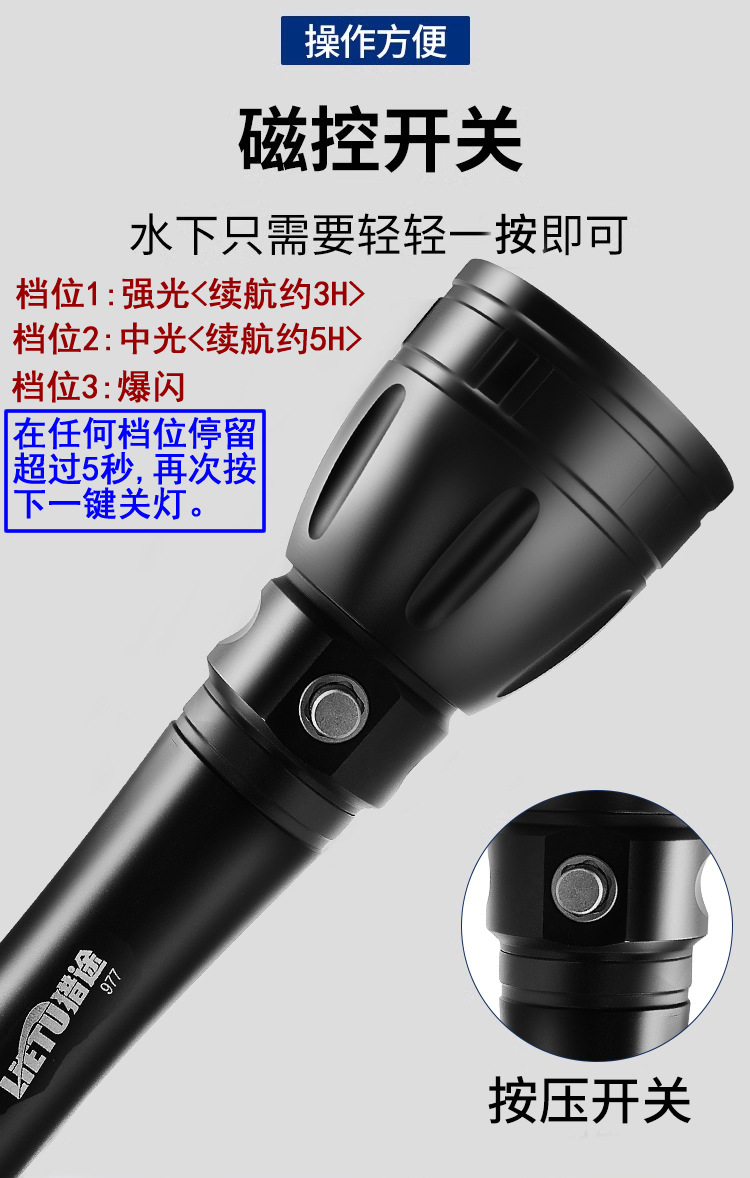 사냥 977 다이빙 손전등 전문 강한 빛 P90 슈퍼 밝은 장거리 26650 야간 다이빙 특수 수중 조명스토어 가기