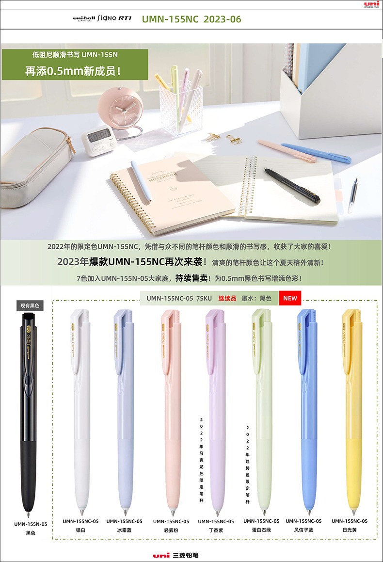 ✅새로운 일본 미쓰비시 UMN-155NC 여름 제한 젤 펜 마카롱 낮은 댐핑 블랙 펜 0.5스토어 가기