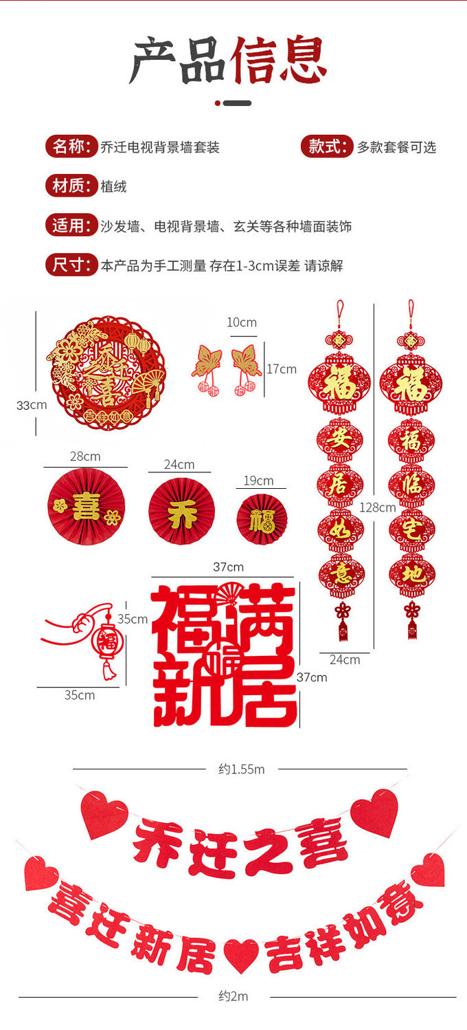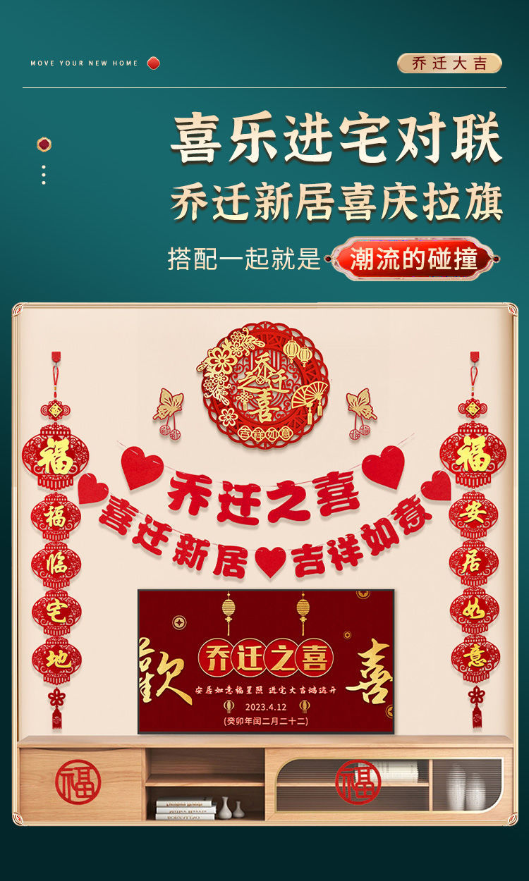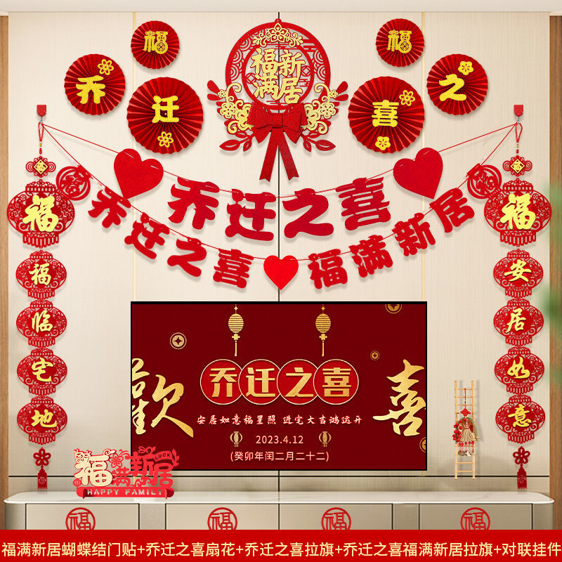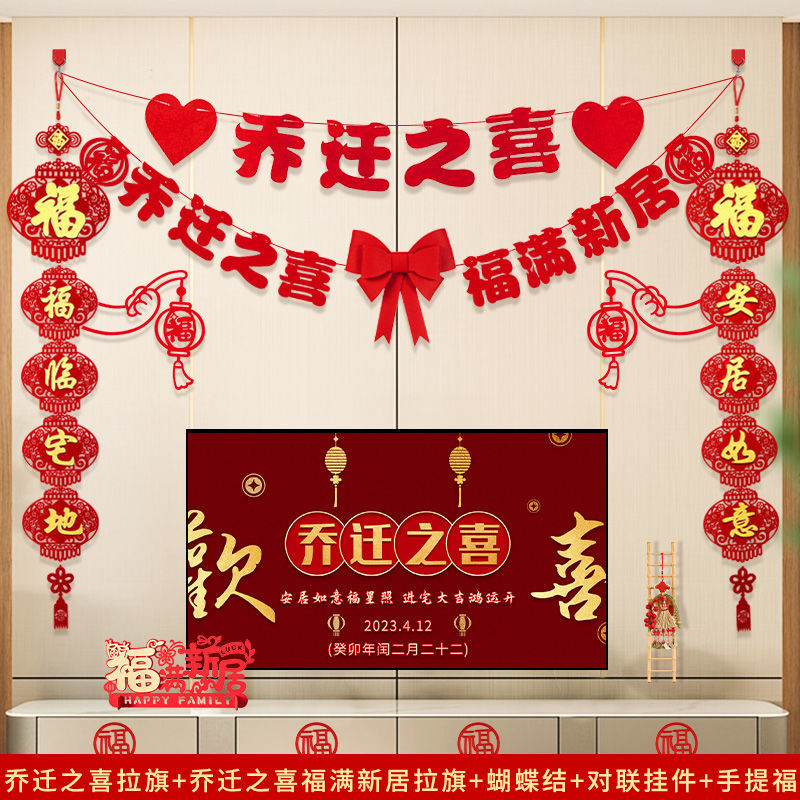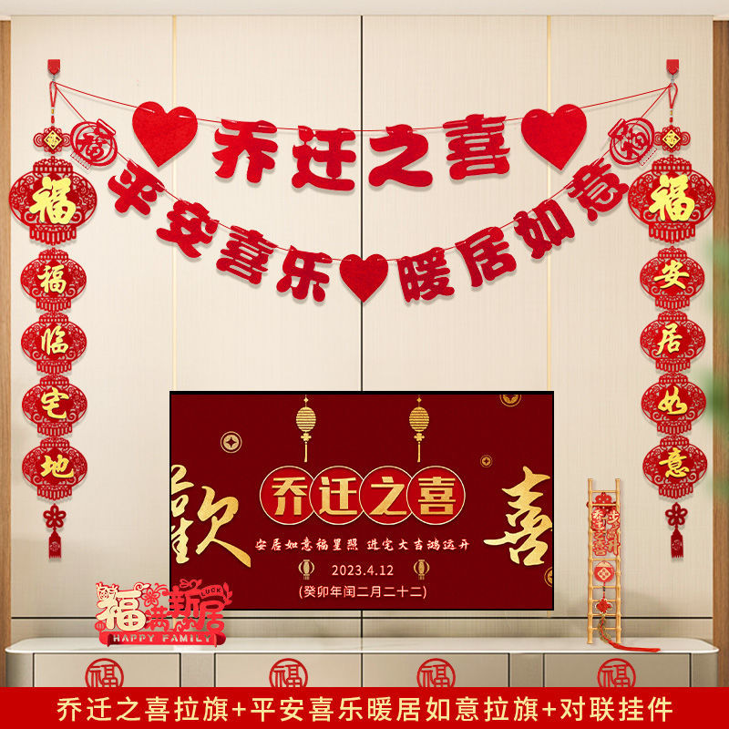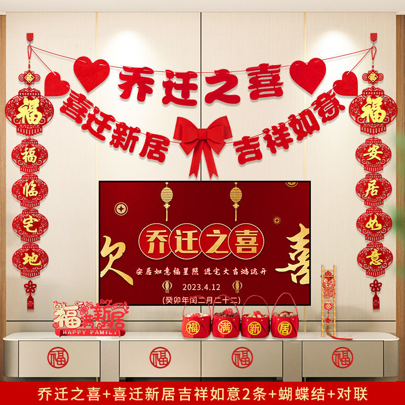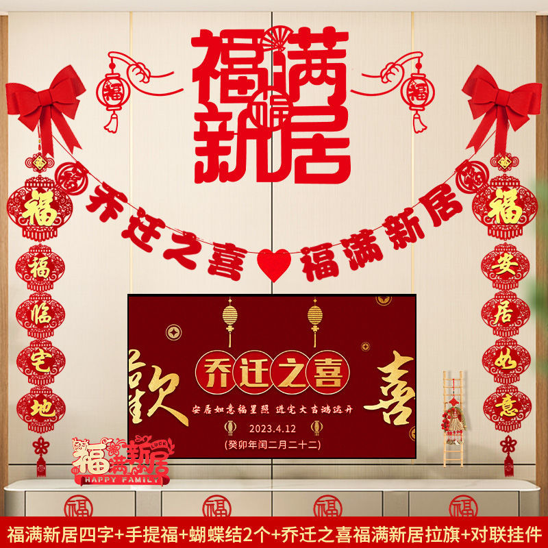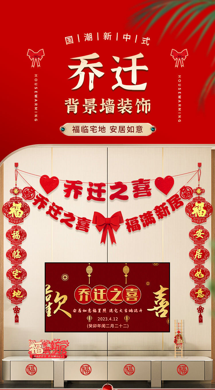 ✅집들이 장식 거실 TV 배경 벽 펜던트 Lianjin 이동 의식을위한 새 집 레이아웃의 기쁨
