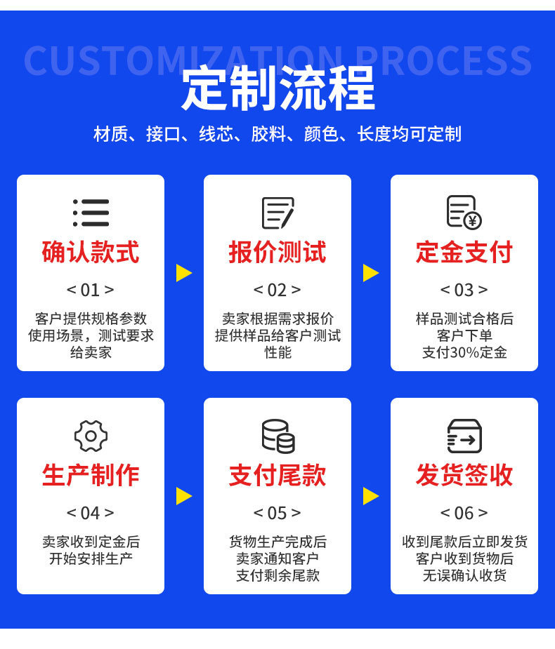 支持多种线材长度、接口类型(Type-C/安卓/平果)定制。如有订制长度或样品,运费不对等问题请联系客服。