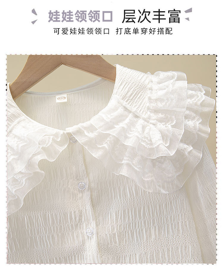 한국 스타일 2025 여아 쉬폰 셔츠, 패셔너블하고 세련된 레이스 칼라 중대형 아동 셔츠, 다용도