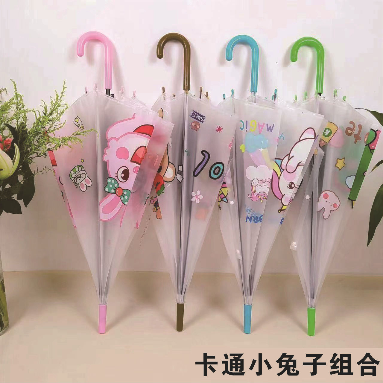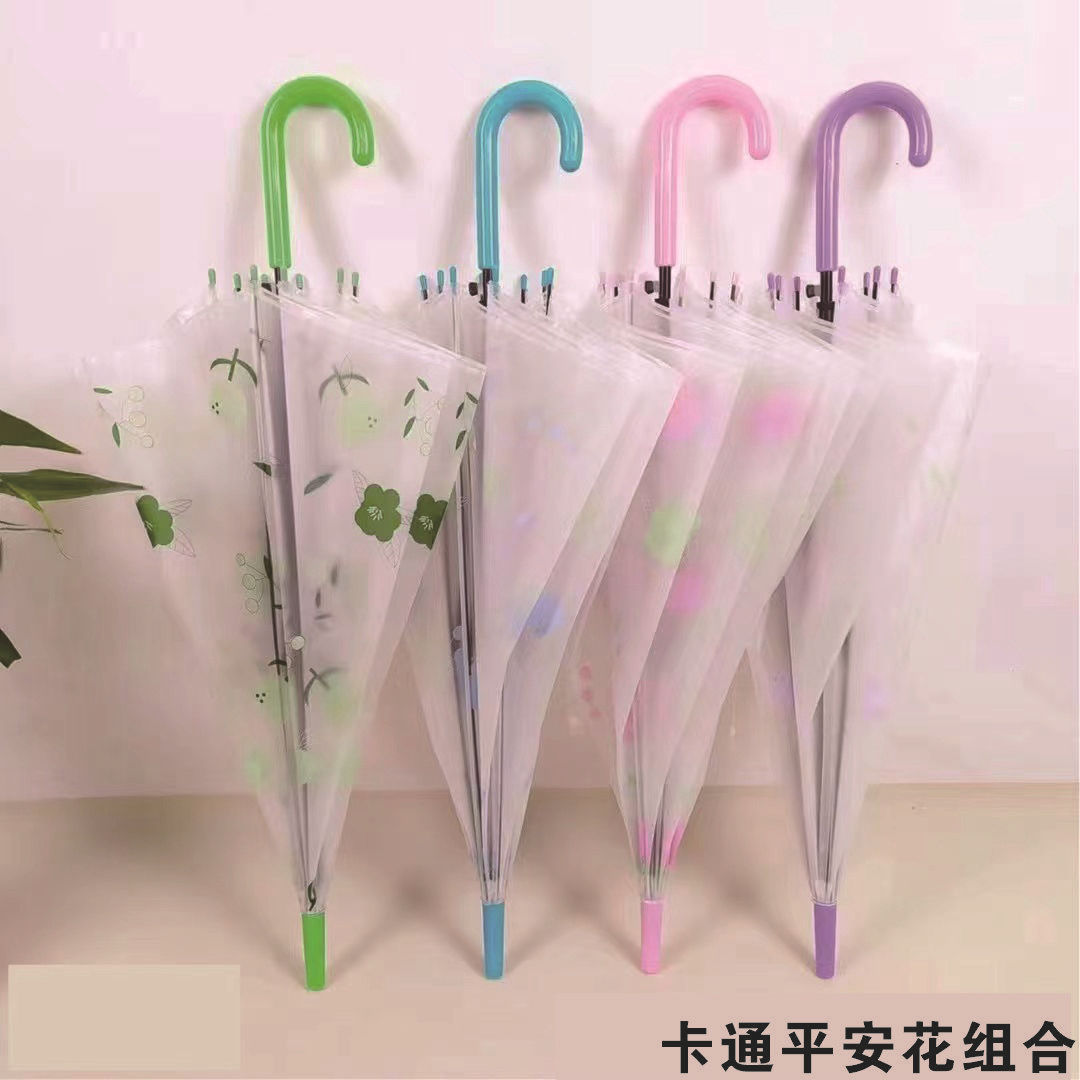 ✅투명 우산 긴 손잡이 우산 인터넷 인기있는 어린이 투명 우산 일회용 도매 직선 손잡이 작은 신선한 광고 우산 인쇄스토어 가기
