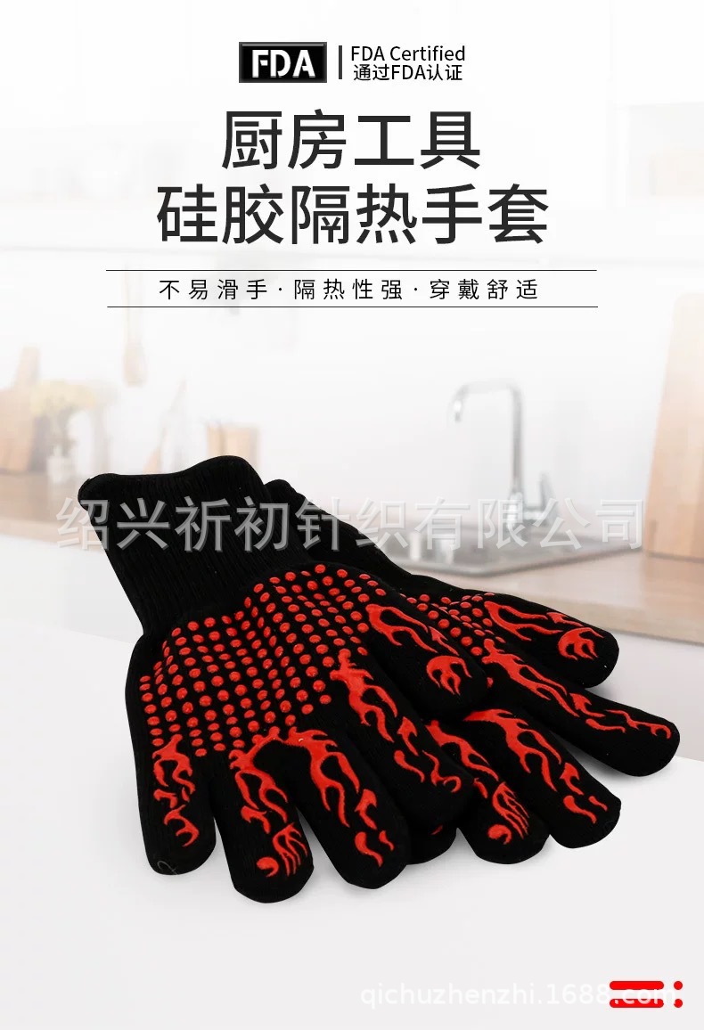 인기 고온 방지 장갑 3중 단열 보호 장갑 용접공 베이킹 요리용 범용 난연성 주방 바베큐 화상 방지