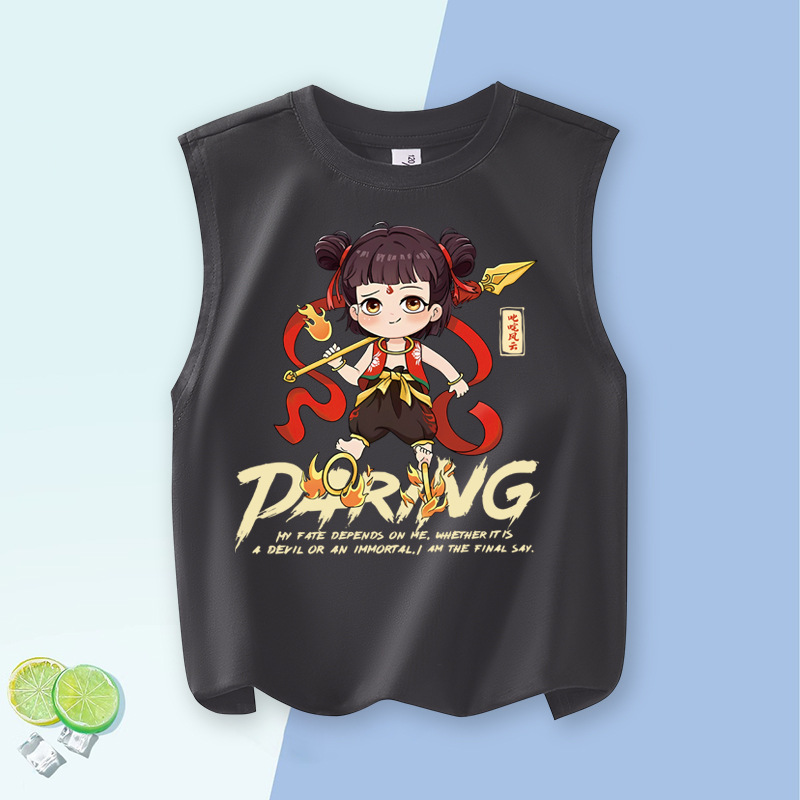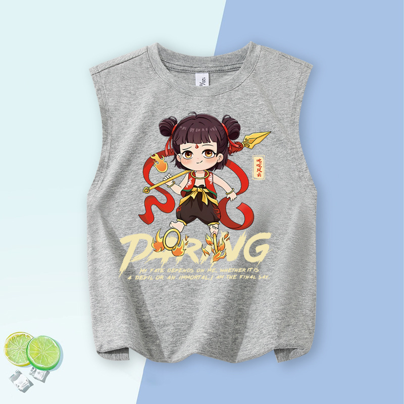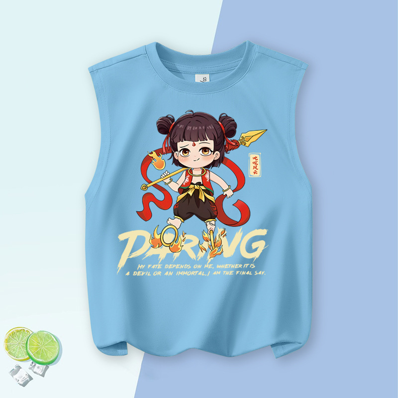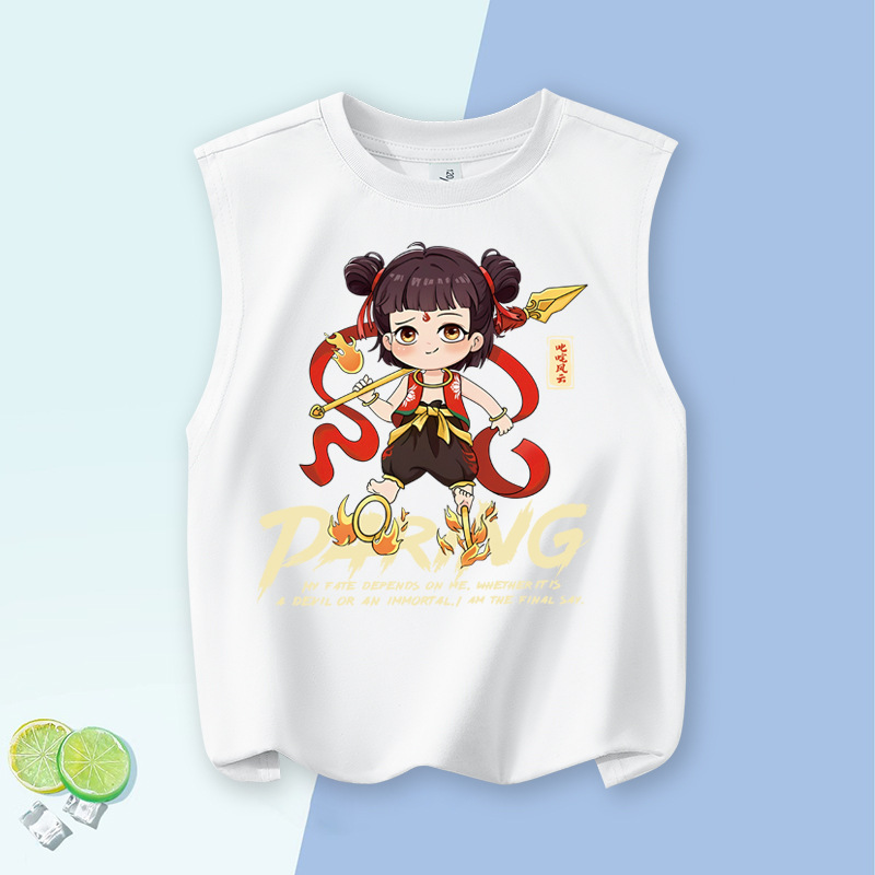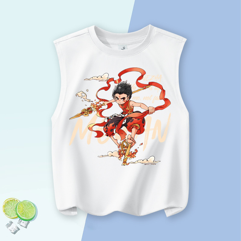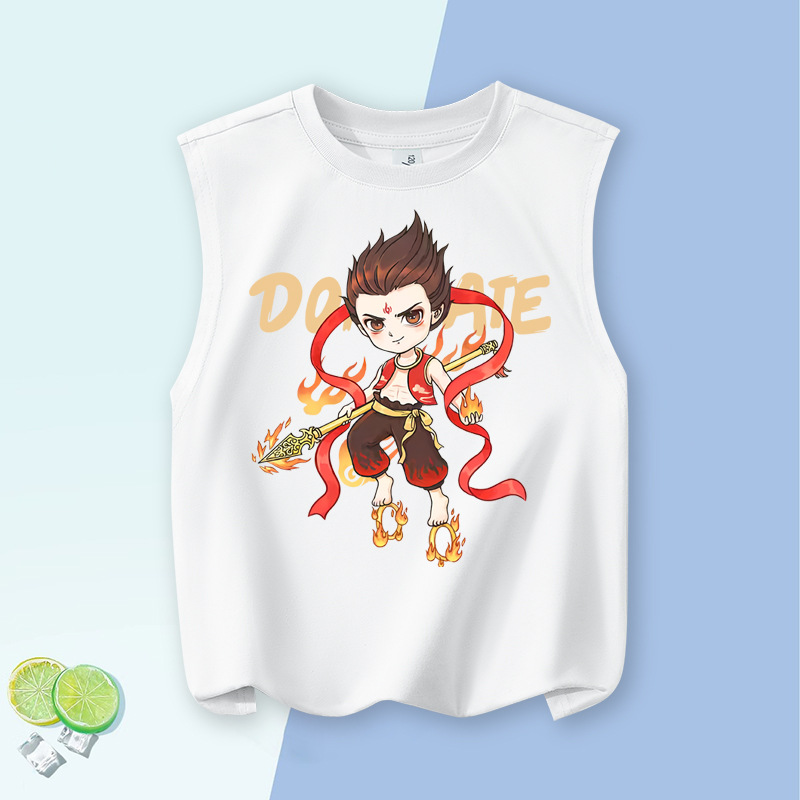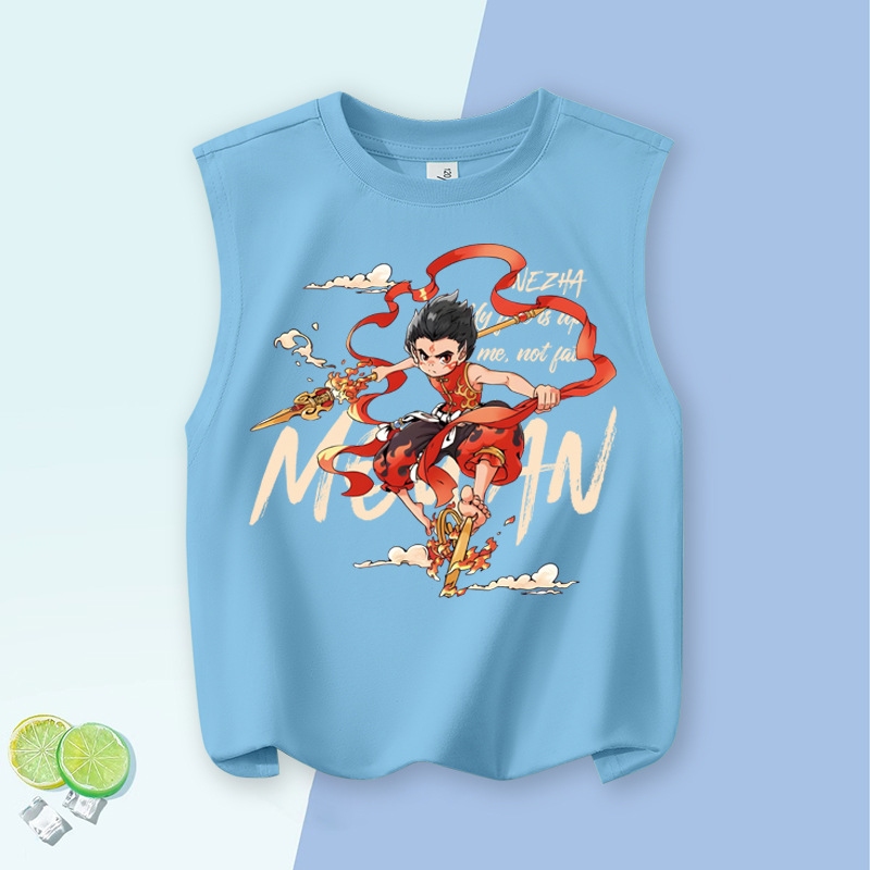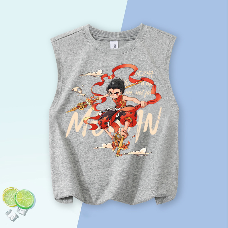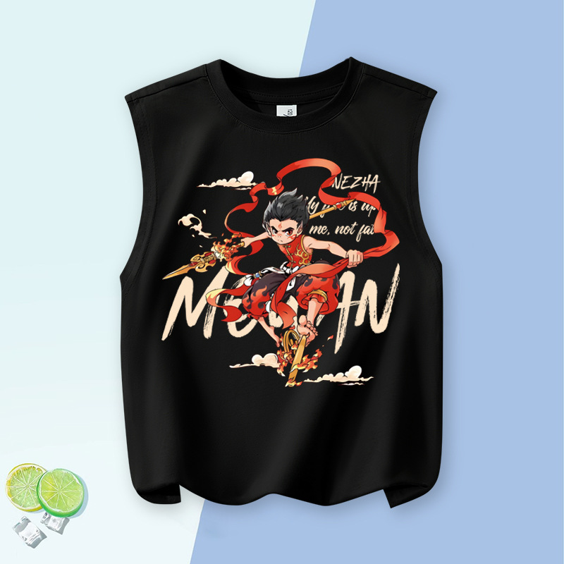 아동복 어린이 조끼 여름 만화 Nazha 퓨어 코튼 탑 스포츠 라운드 넥 민소매 티셔츠 중 큰 어린이와 소년