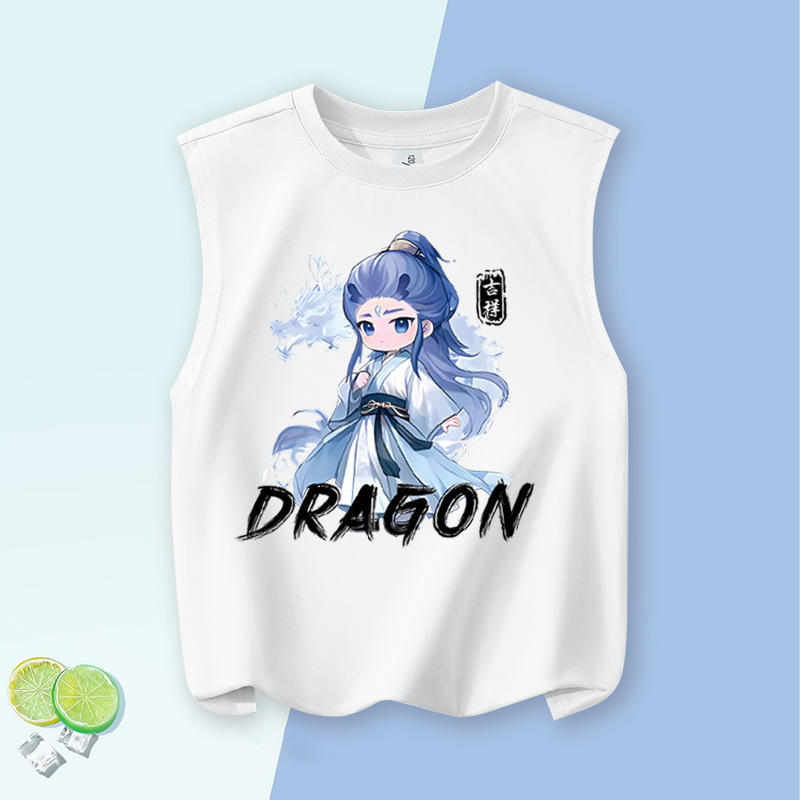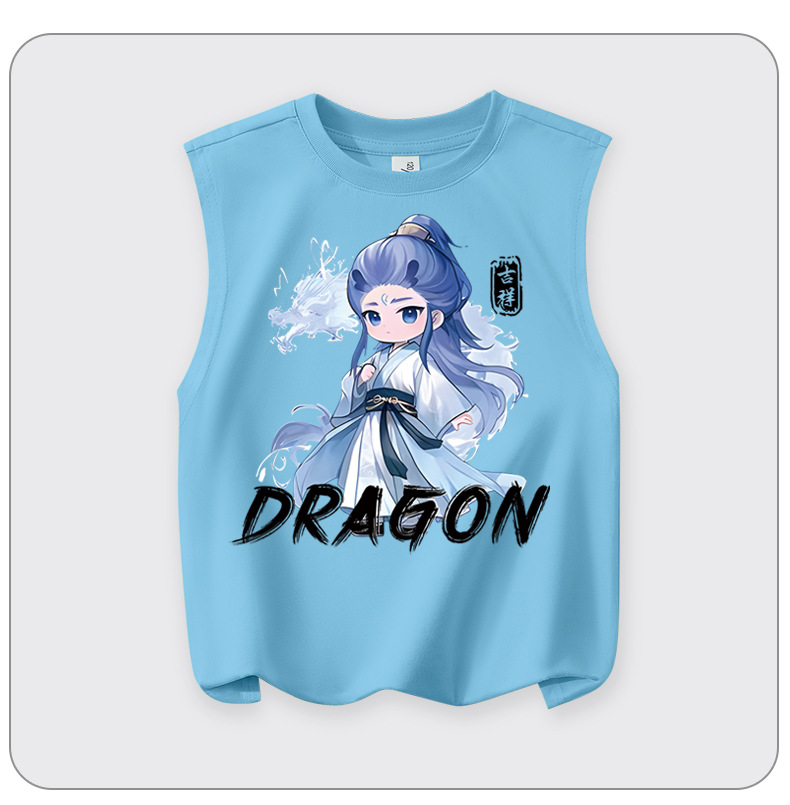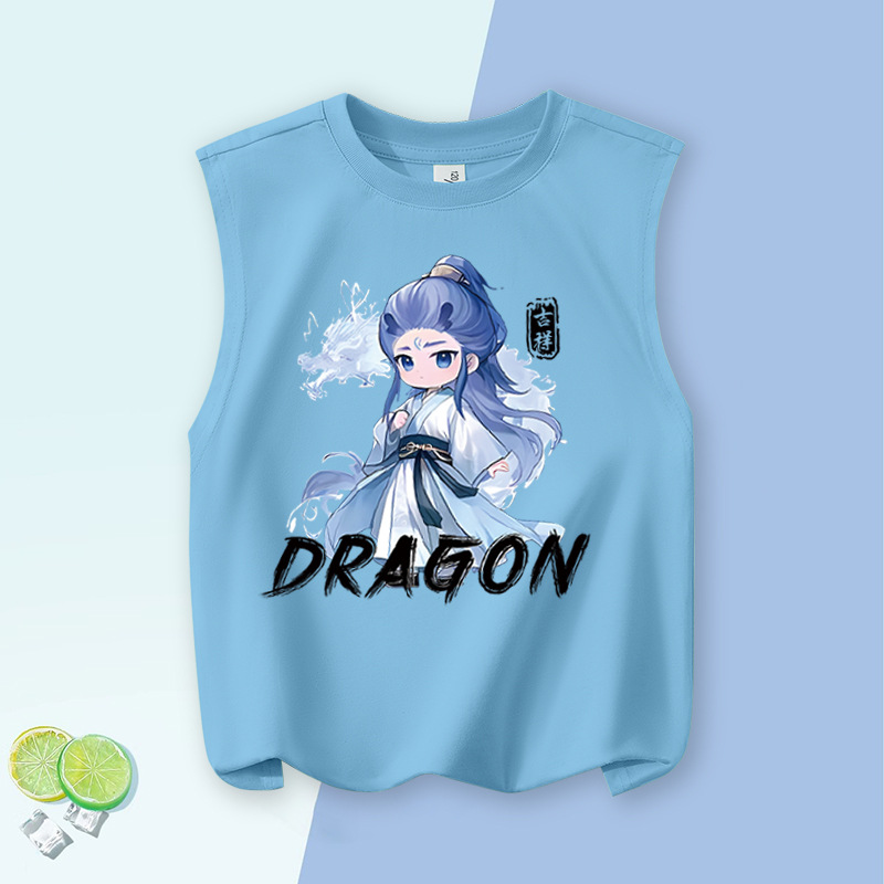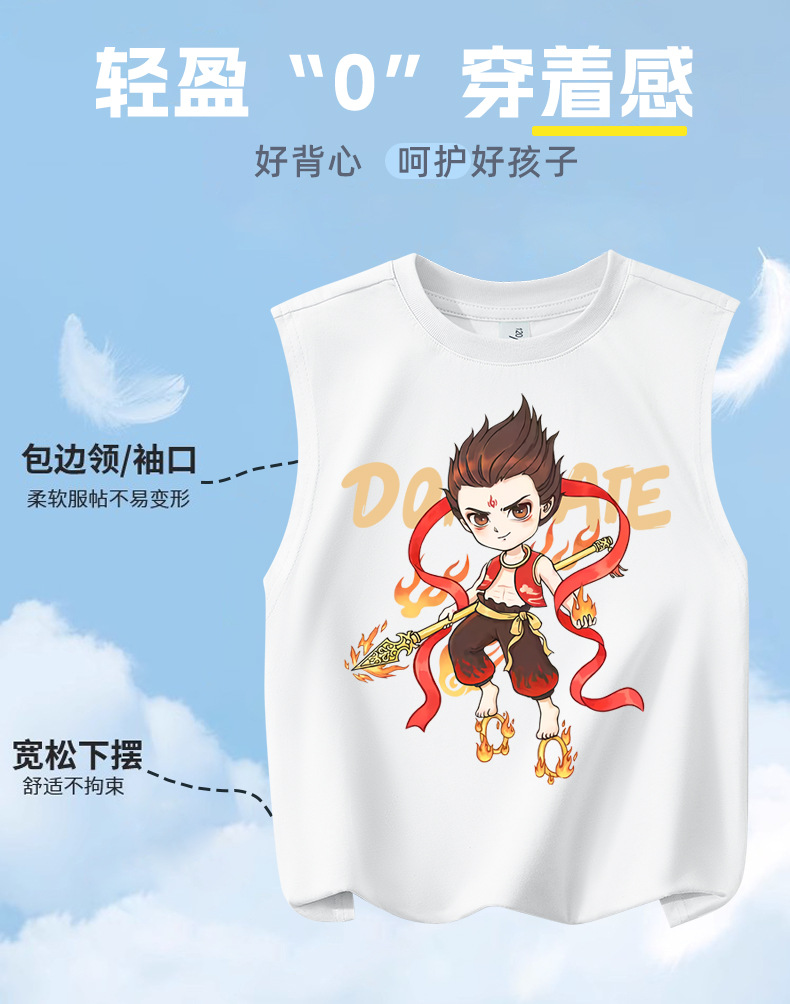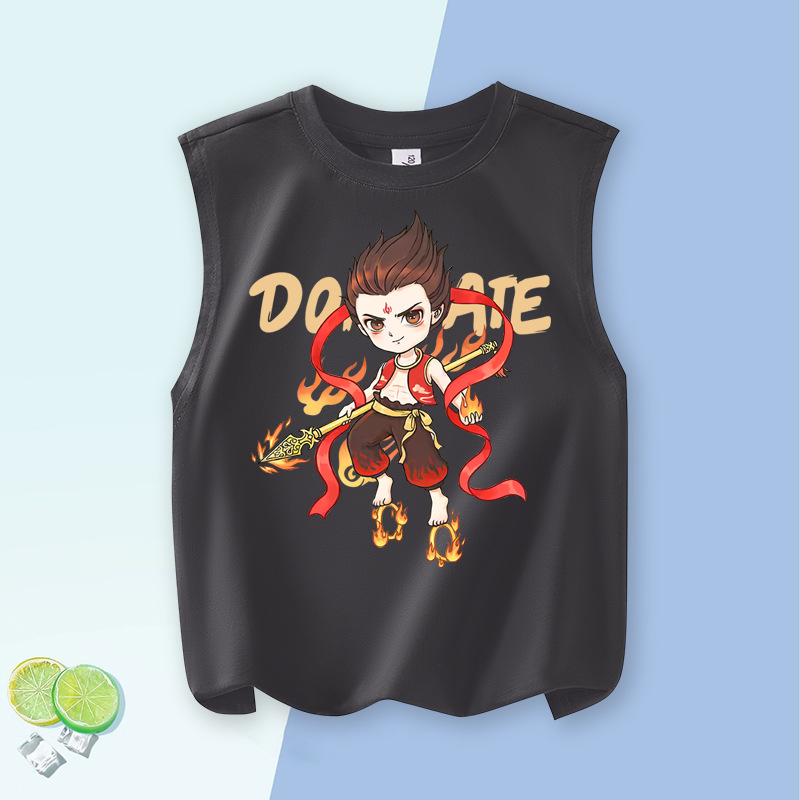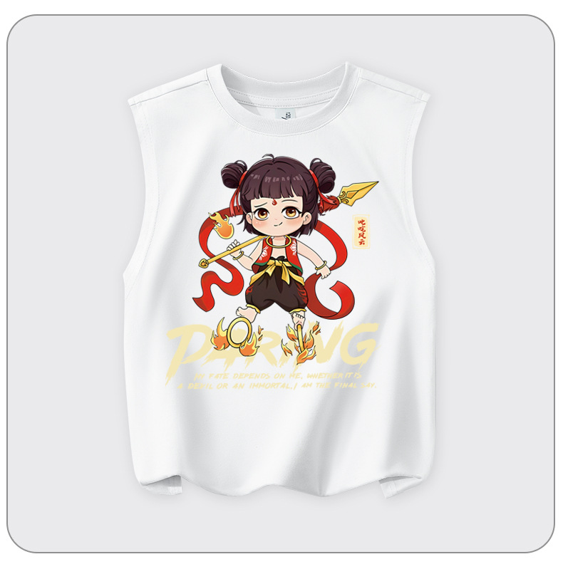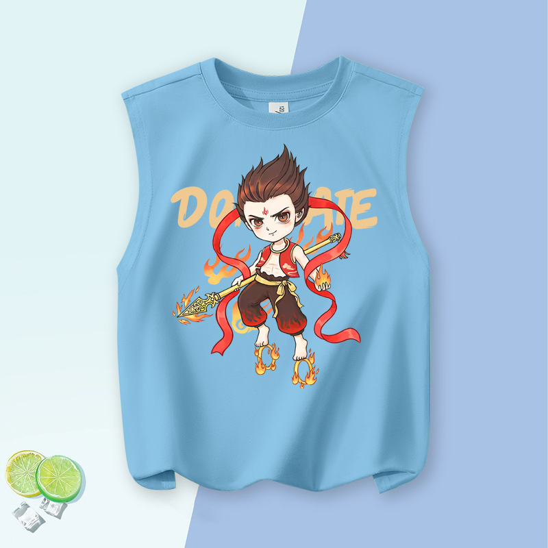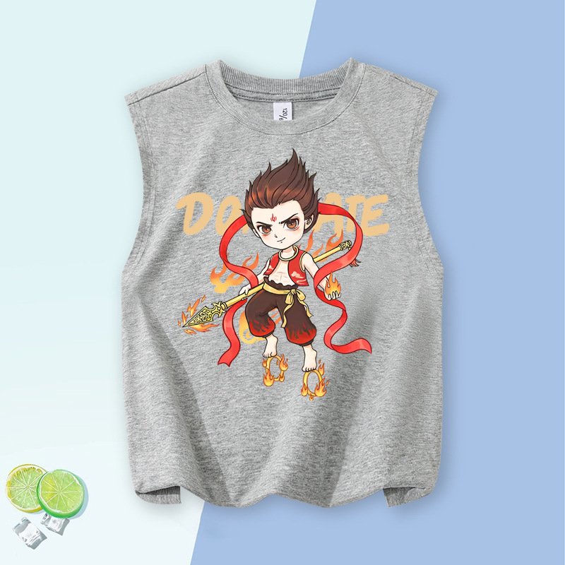 아동복 어린이 조끼 여름 만화 Nazha 퓨어 코튼 탑 스포츠 라운드 넥 민소매 티셔츠 중 큰 어린이와 소년