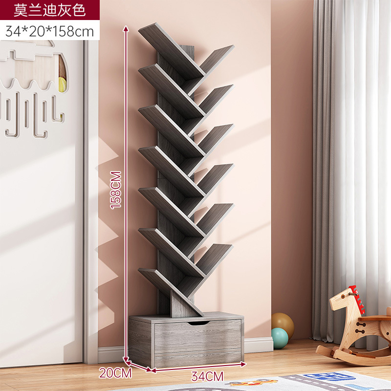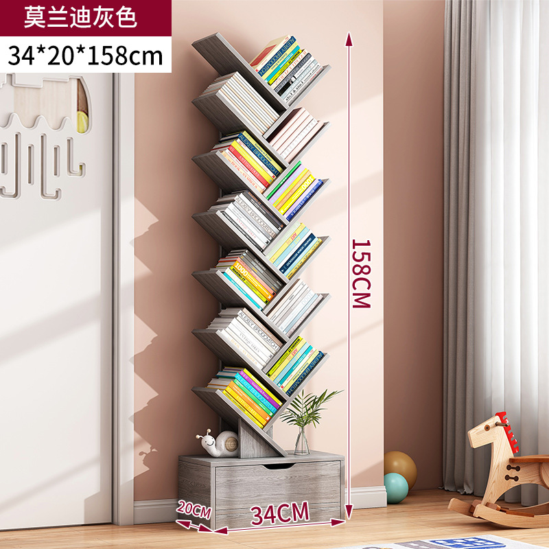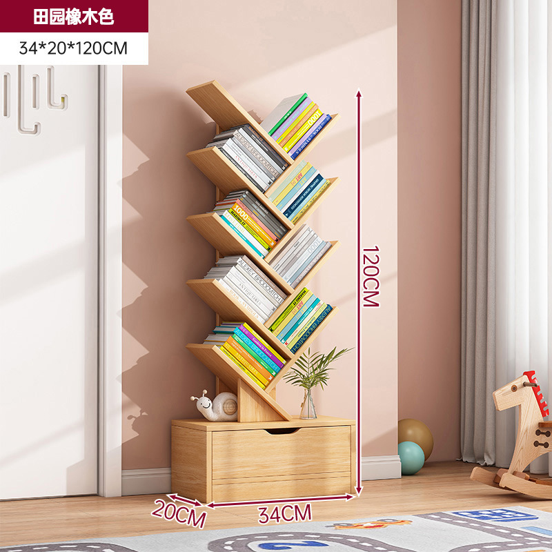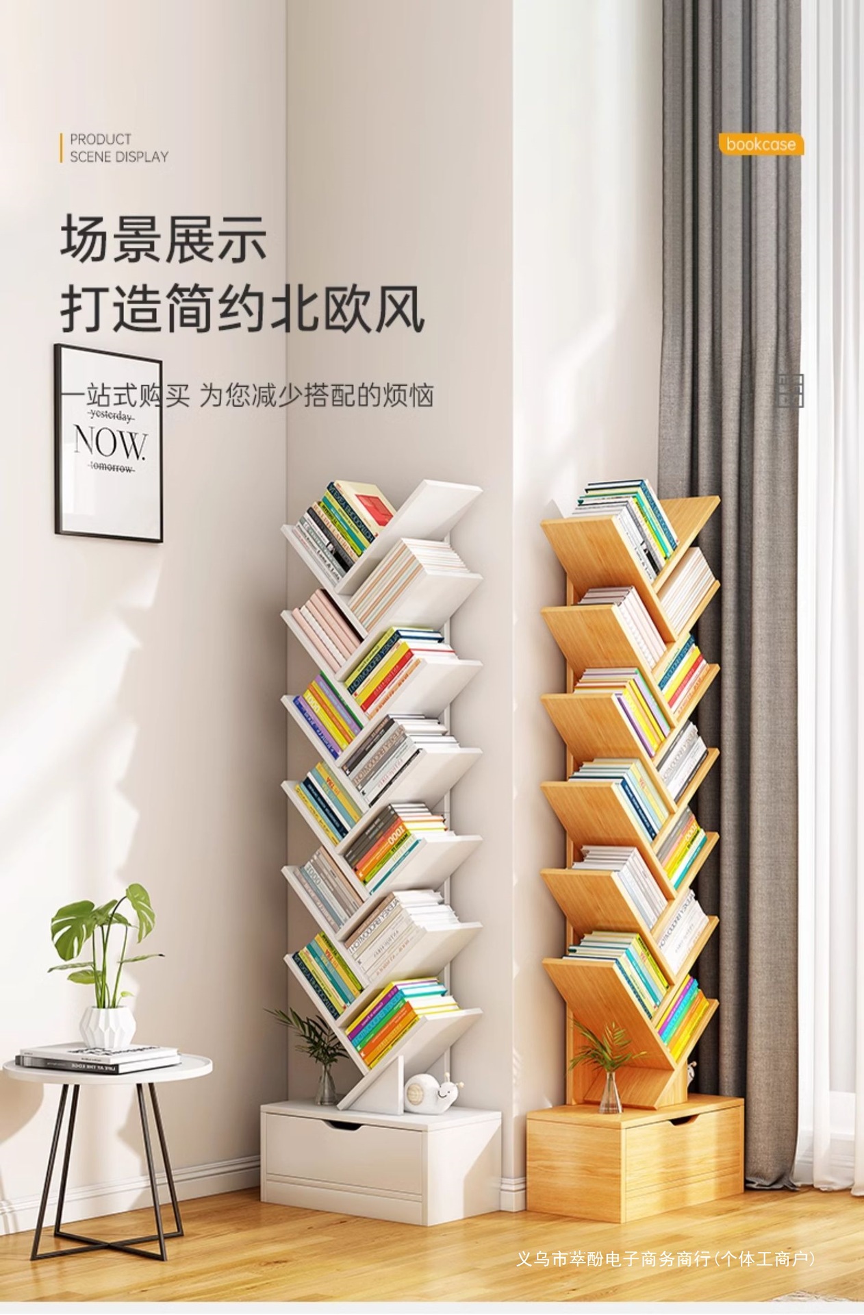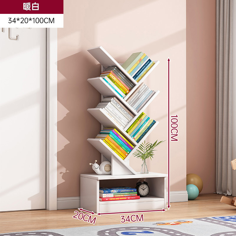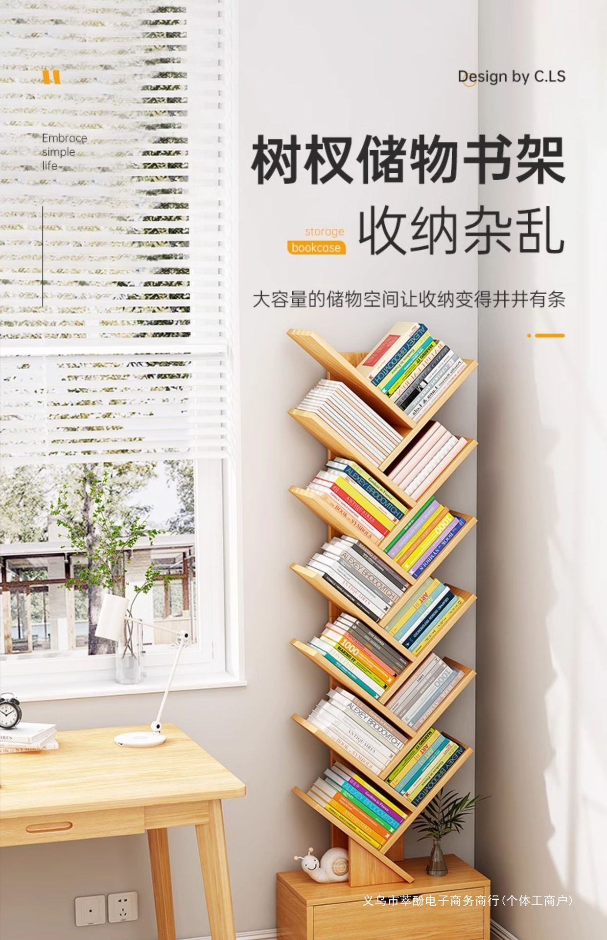 간단한 나무 모양의 작은 책장 보관 선반 바닥-서 침실 캐비닛 거실 보관 랙 가정용 다층 창조적 인 좁은 책장
