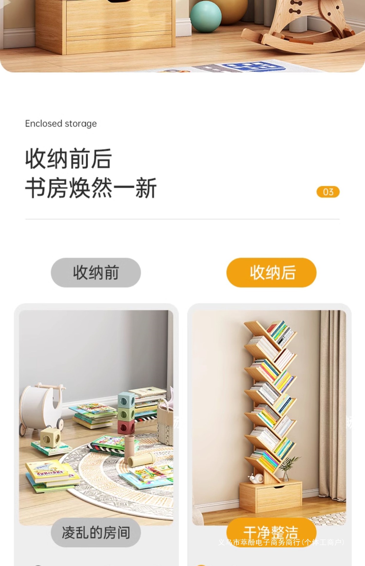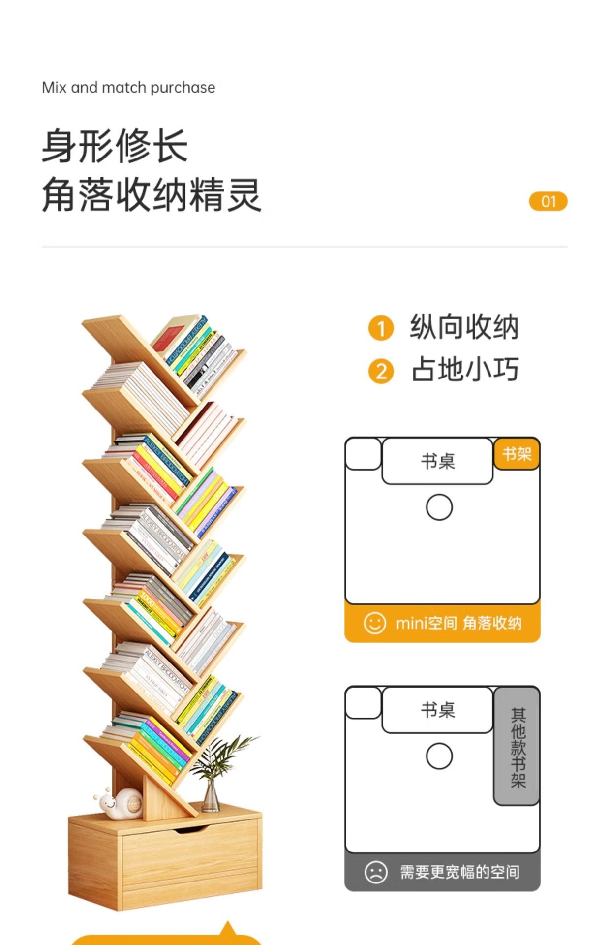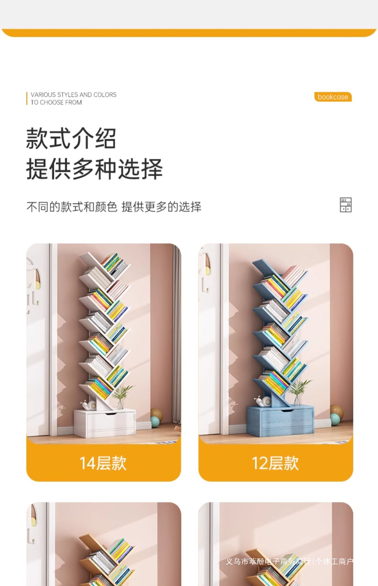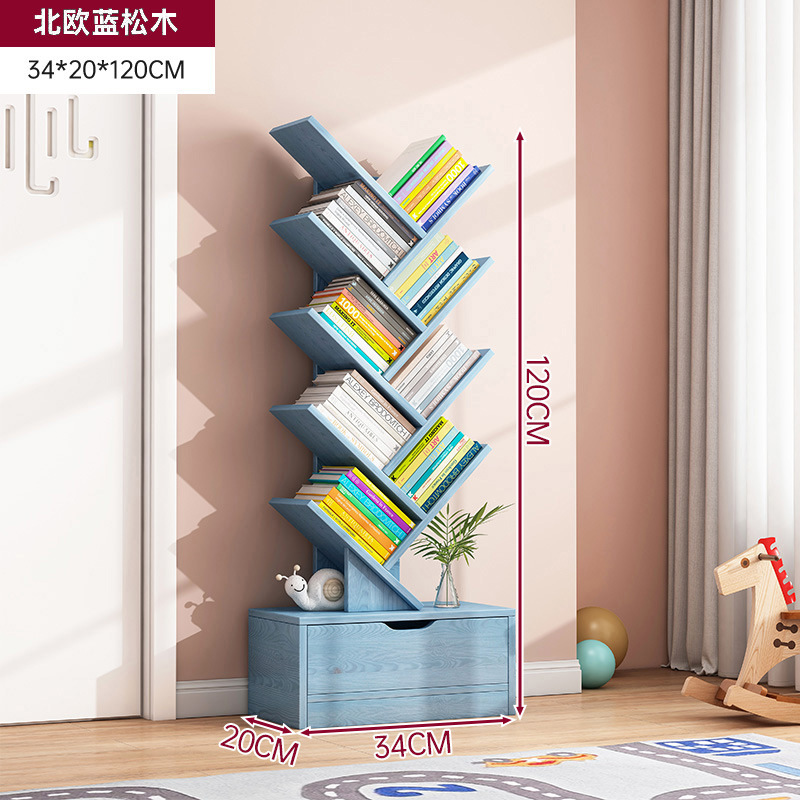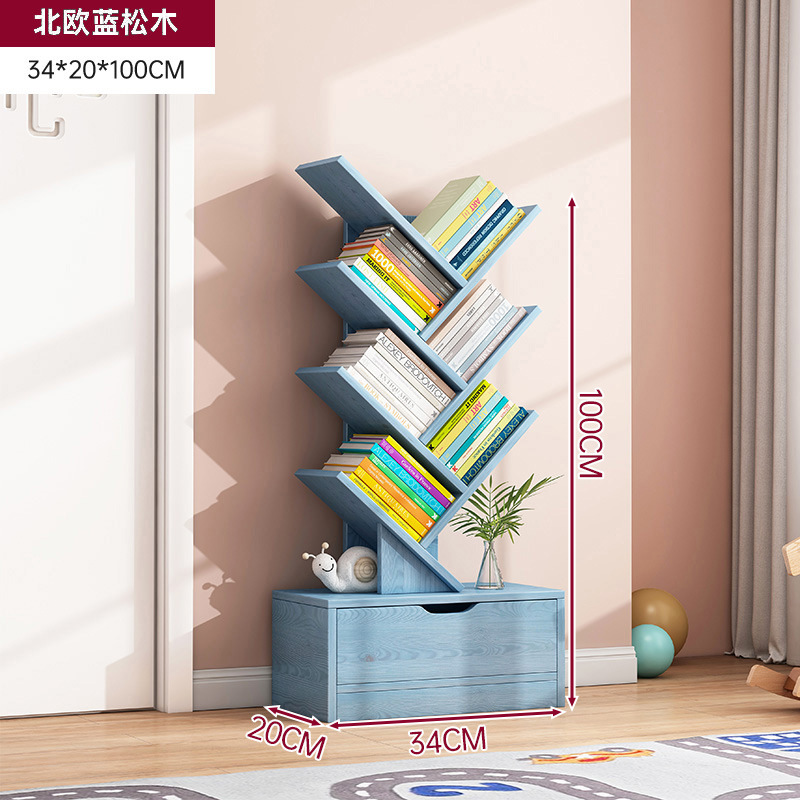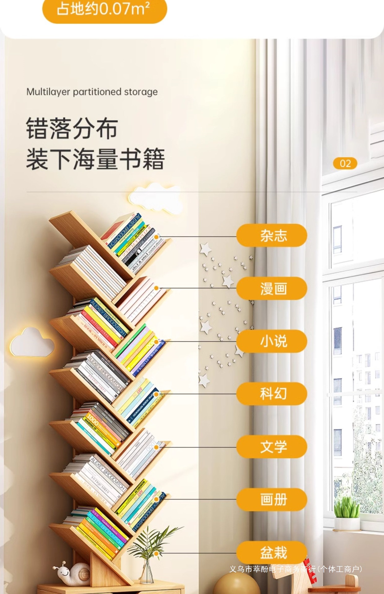 간단한 나무 모양의 작은 책장 보관 선반 바닥-서 침실 캐비닛 거실 보관 랙 가정용 다층 창조적 인 좁은 책장