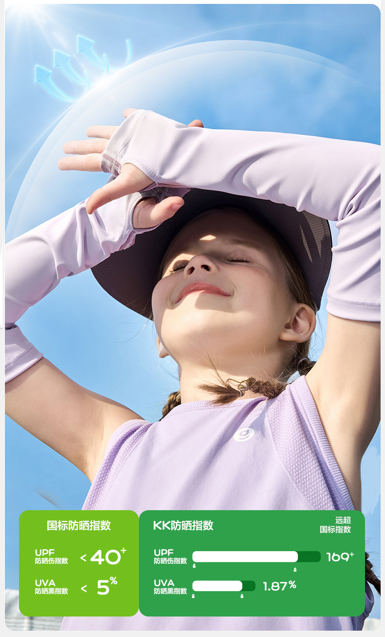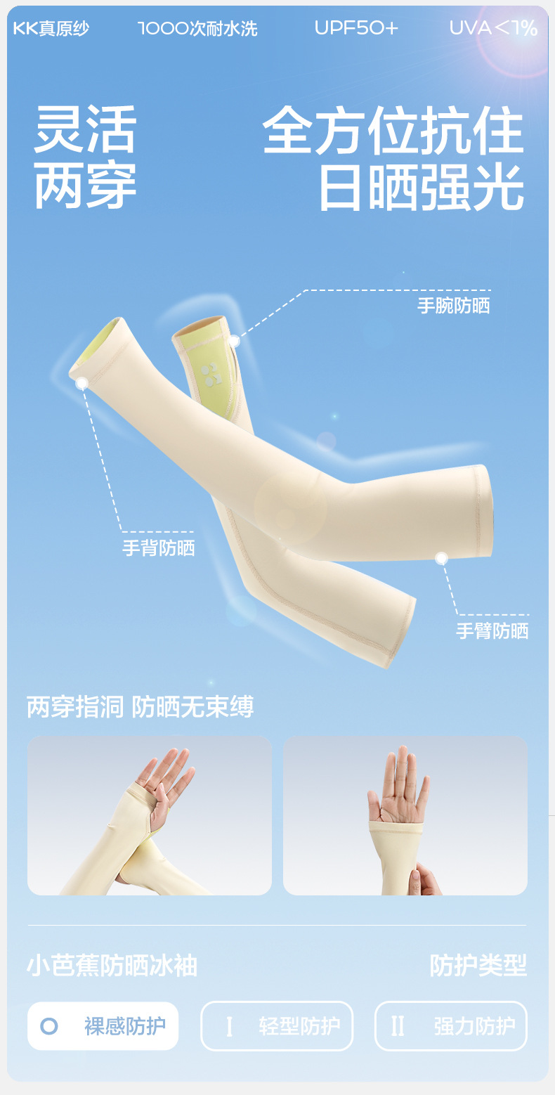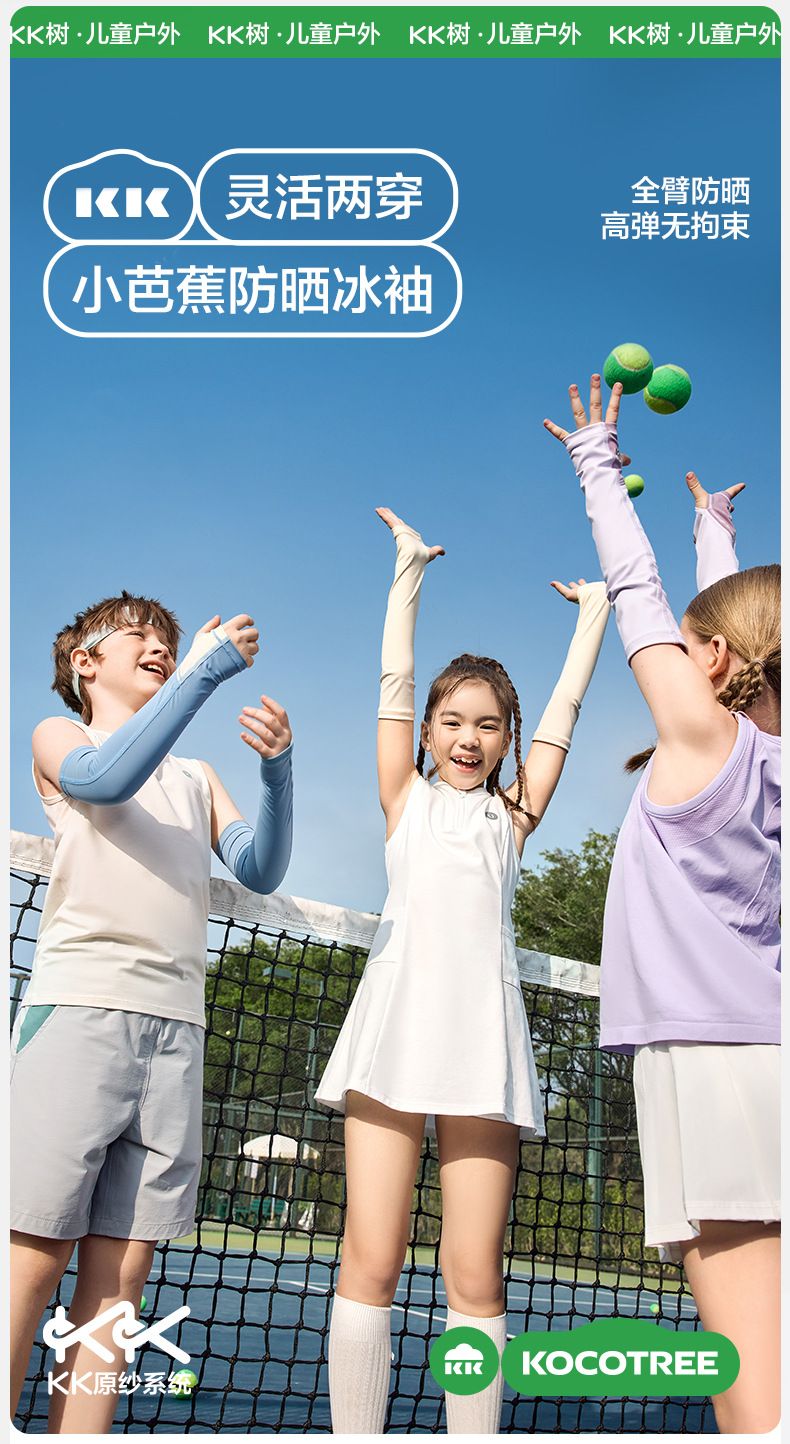 KK 트리 작은 바나나 어린이 자외선 차단제 얼음 소매 UV 보호 얼음 실크 시원한 느낌 소년과 소녀 아기 얼음 소매 여름 통기성