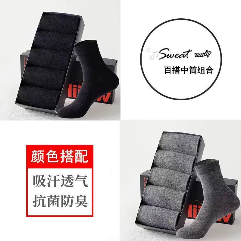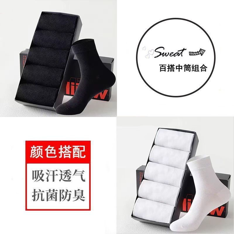 양말 남자 미드 양말 4 시즌 코튼 편안한 땀 흡수 탈취제 롱 배럴 스포츠 블랙 통기성 남자 스타킹