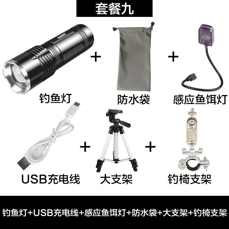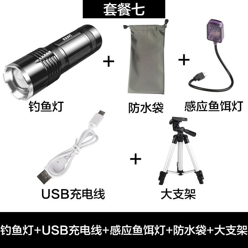 밤 낚시 빛 바람 강한 빛 하이라이트 낚시 빛 높은 전원 충전 줌 블루 빛 빛나는 손전등 레이저 캐논스토어 가기