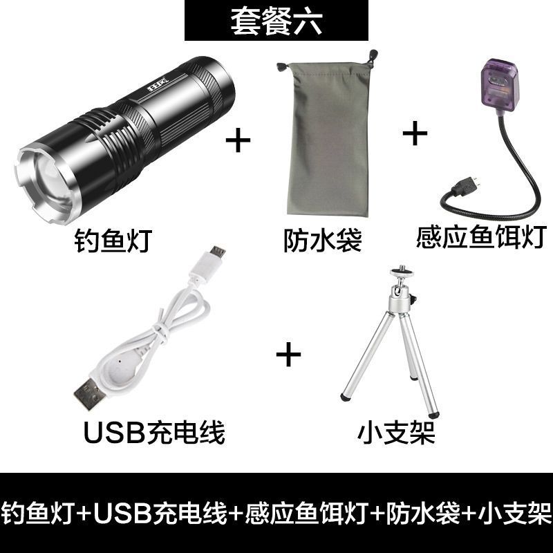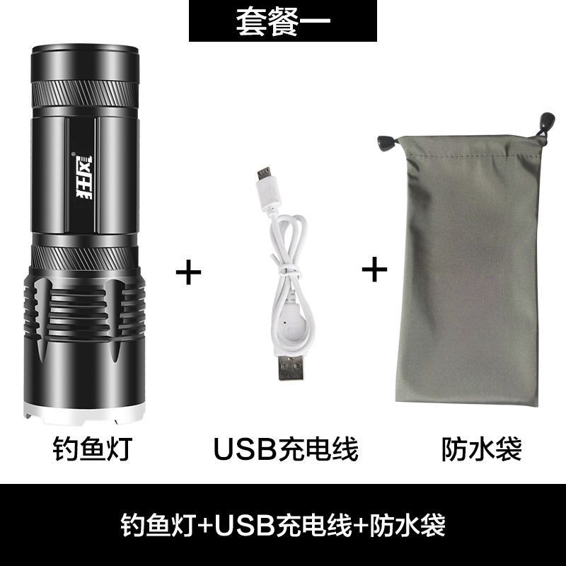 밤 낚시 빛 바람 강한 빛 하이라이트 낚시 빛 높은 전원 충전 줌 블루 빛 빛나는 손전등 레이저 캐논