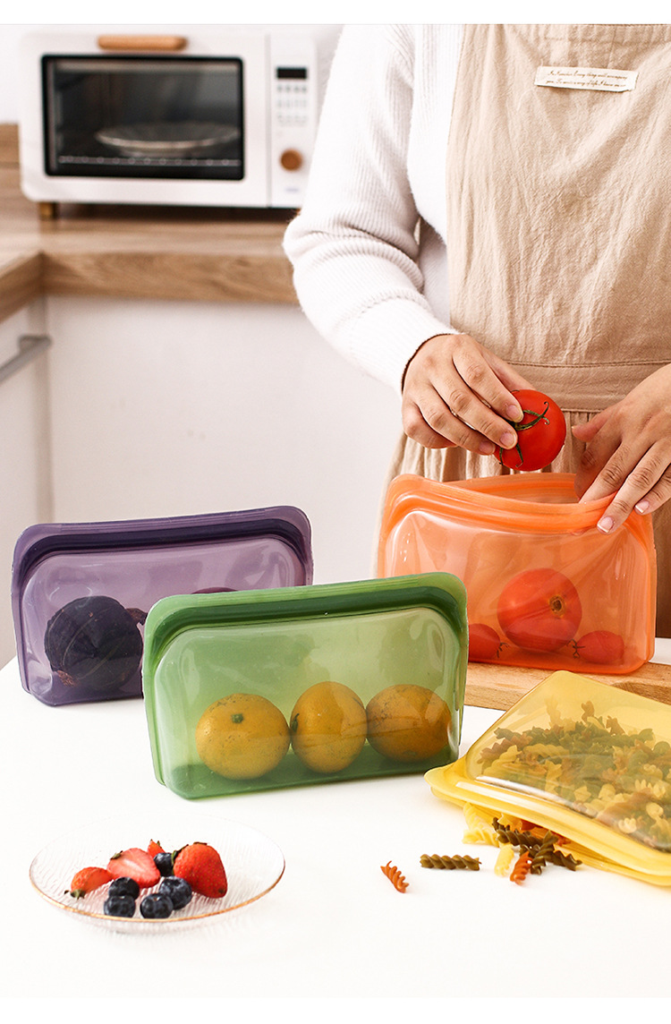 식품 등급 실리콘 보존 가방 분류 밀봉 식품 가방 냉장고 안티 스트링 맛 과일, 야채 및 육류 대용량 저장스토어 가기