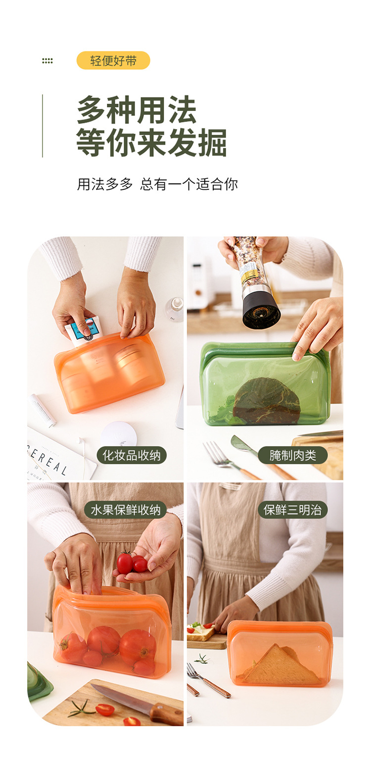 식품 등급 실리콘 보존 가방 분류 밀봉 식품 가방 냉장고 안티 스트링 맛 과일, 야채 및 육류 대용량 저장