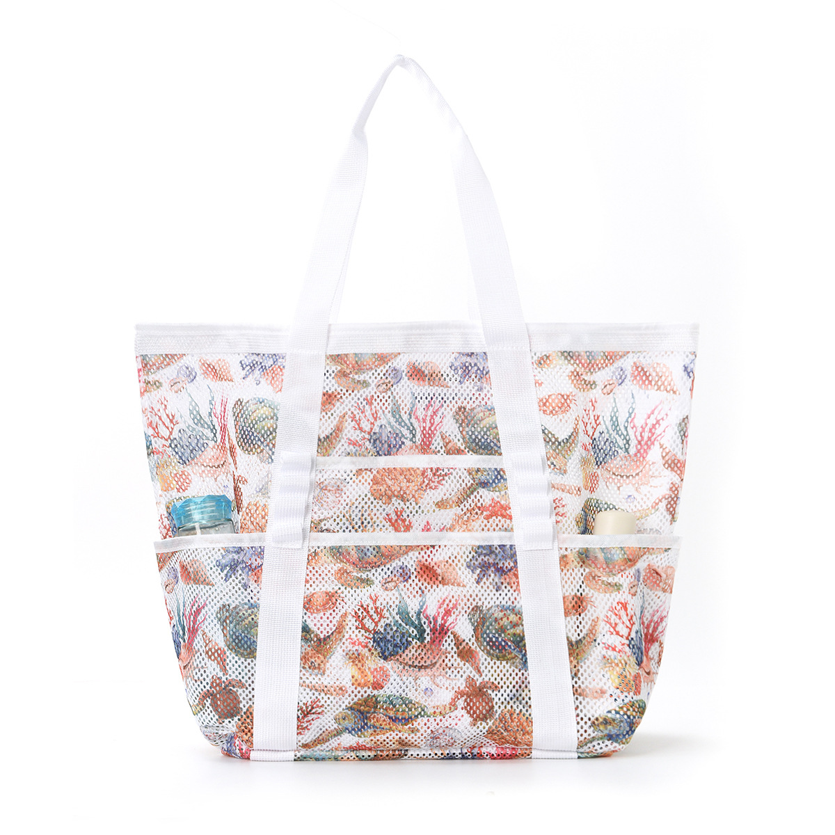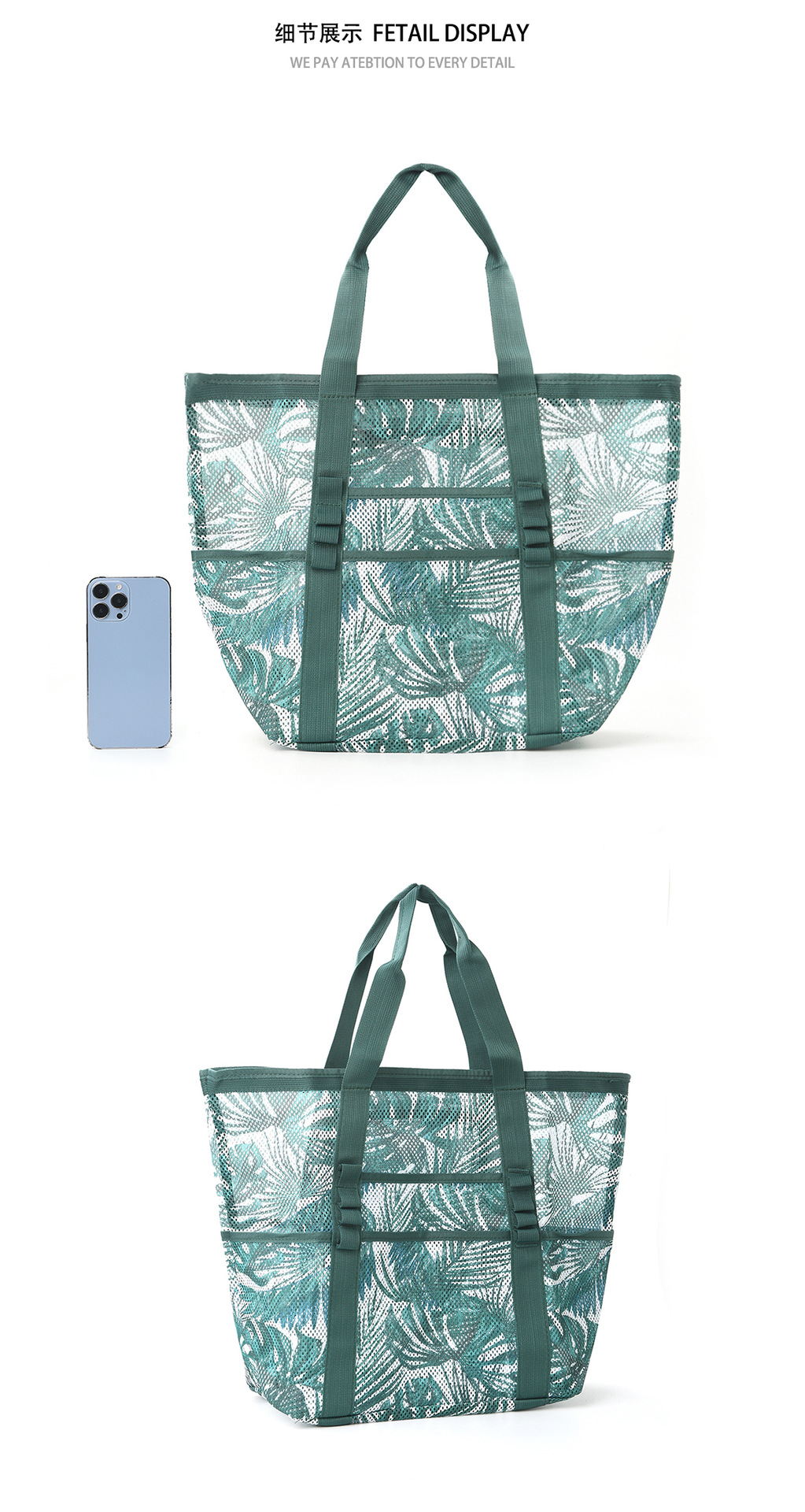 국경 간 휴대용 비치 백 멀티 포켓 접이식 대용량 비치 백 휴대용 핸드백 해변 보관 가방