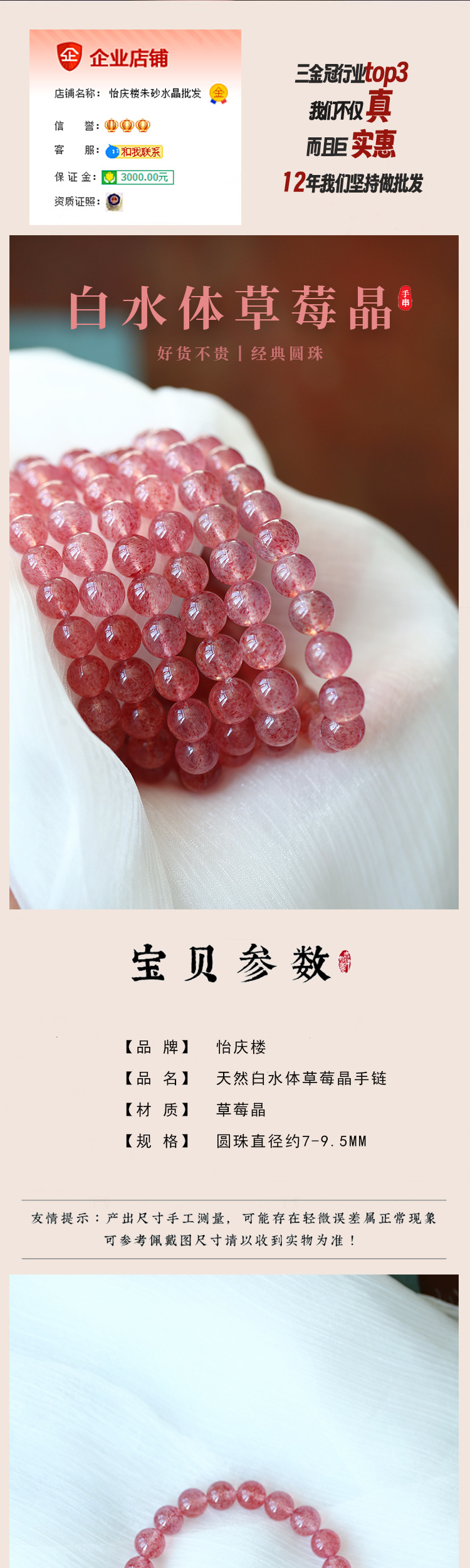 천연 화이트 워터 바디 딸기 크리스탈 팔찌 여름 여성 보석 팔찌 여성용 팔찌 복숭아 크리스탈 크리스탈스토어 가기