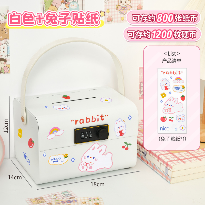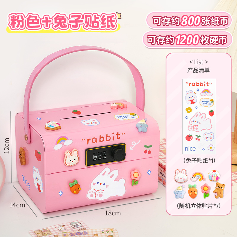 • 프린세스 핑크 휴대용 비밀번호 상자(무료 토끼 스티커)