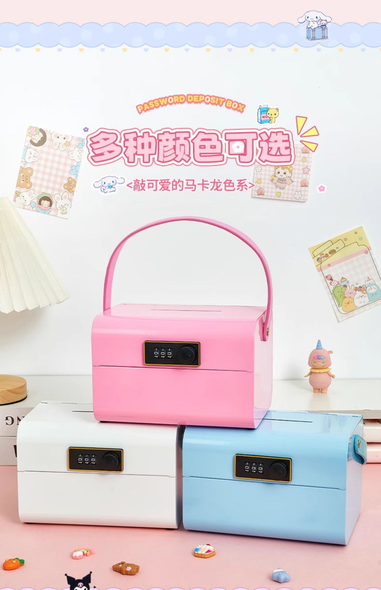 • 프린세스 핑크 휴대용 비밀번호 상자(무료 쿠로미 스티커)