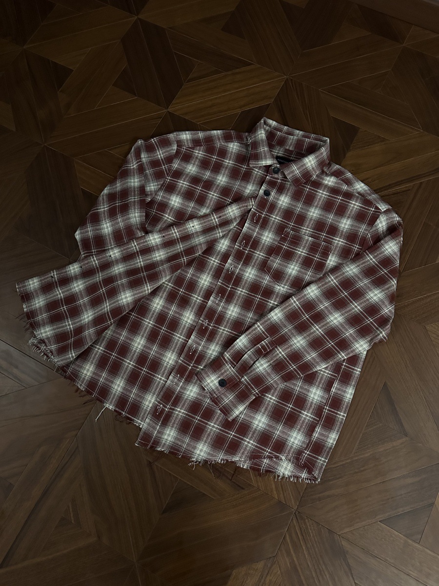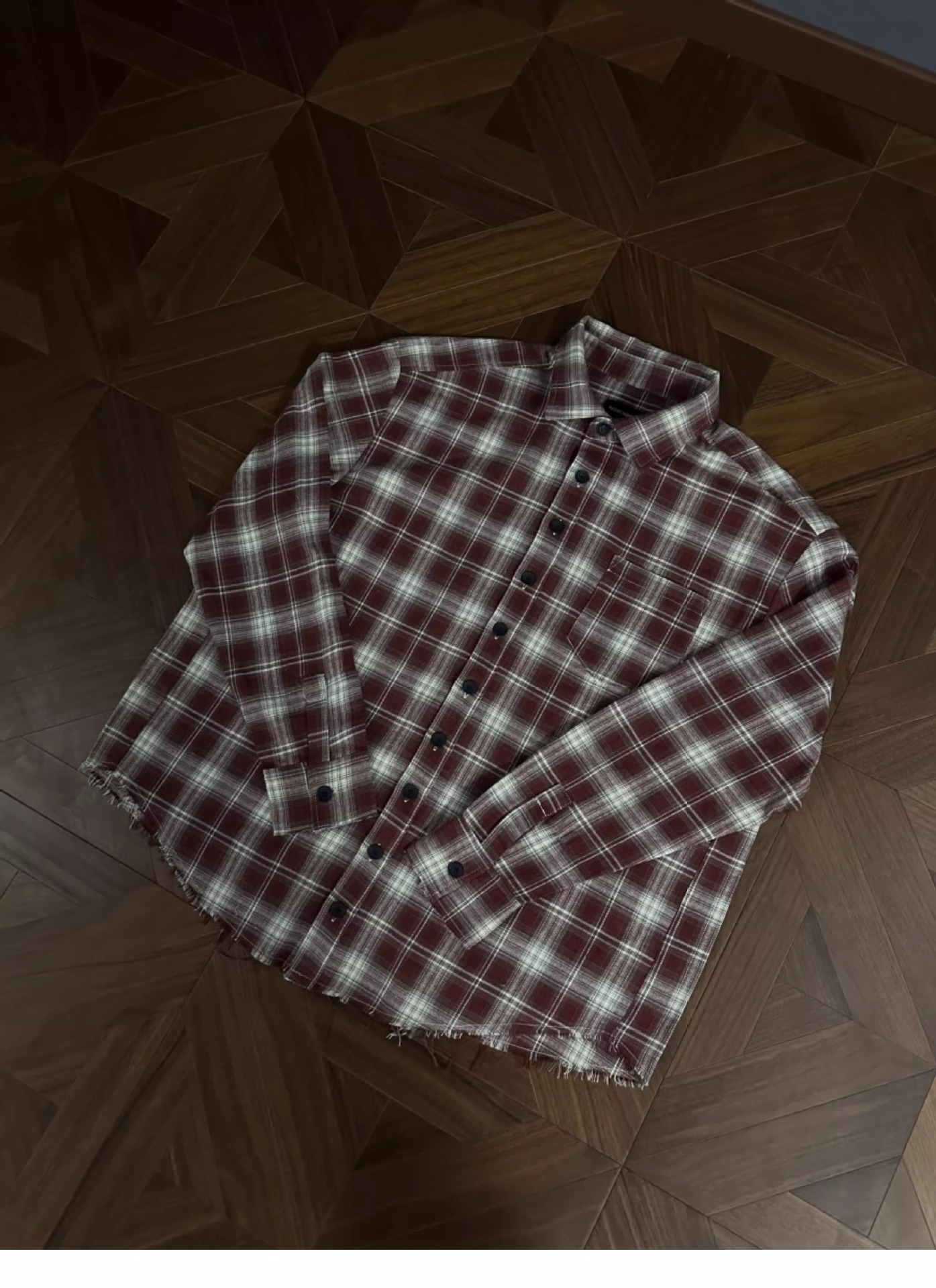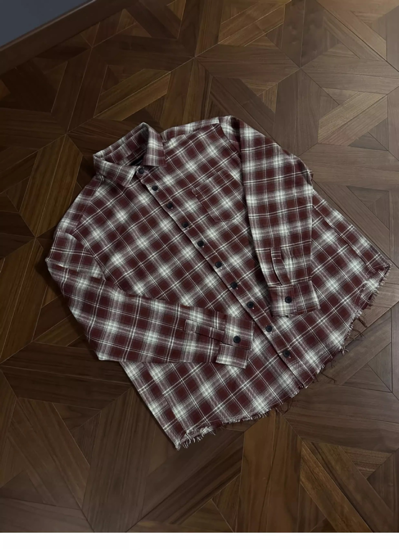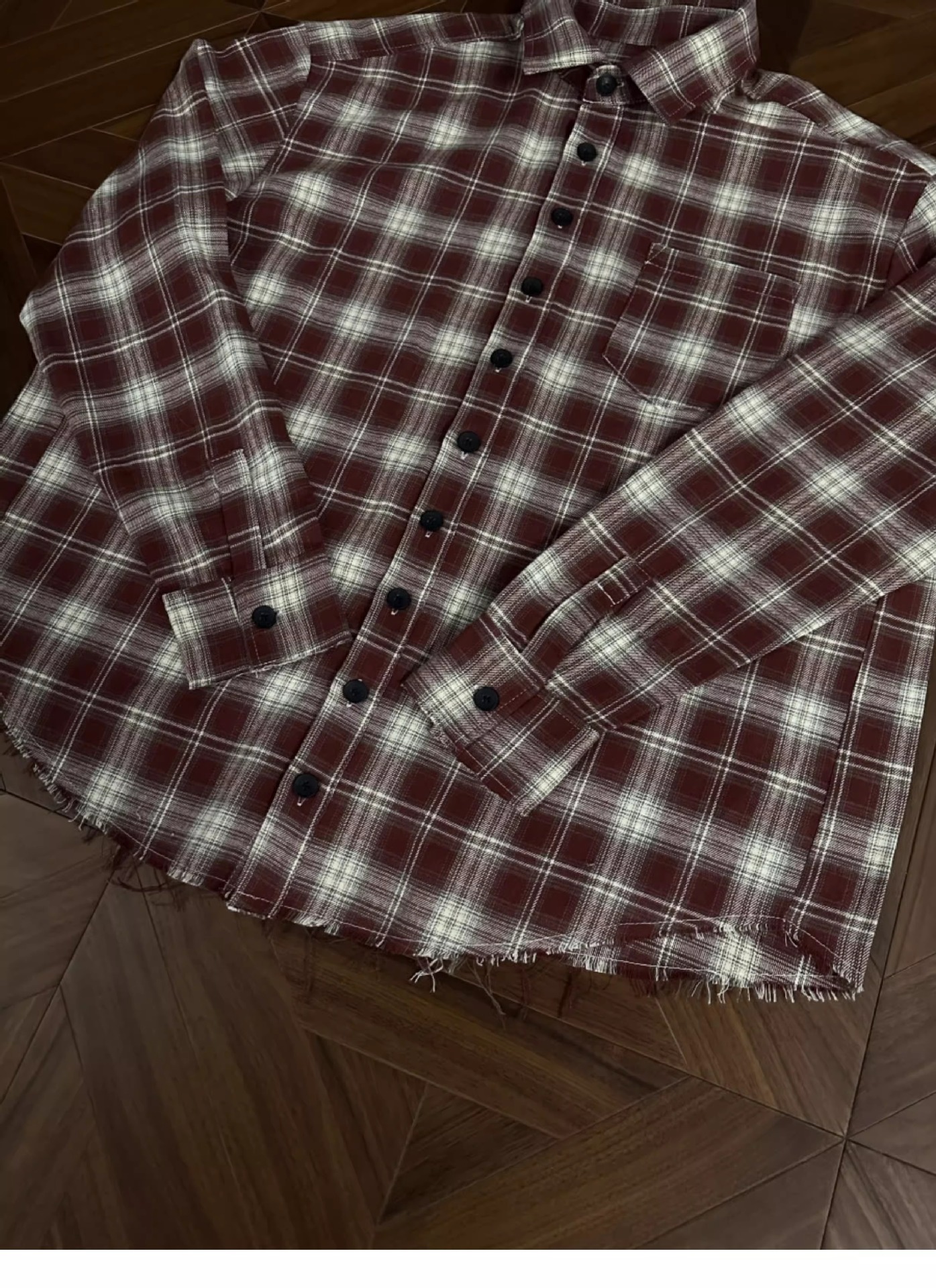 RTIMFD 레트로 더블 라인 미세 격자 무늬 플래넬 술 파괴 셔츠 면 남성용 격자 무늬 클렌핏스토어 가기