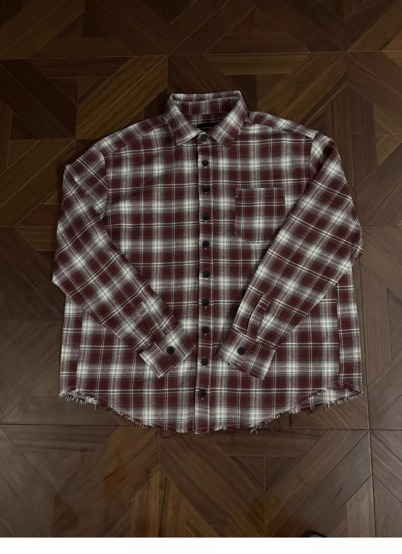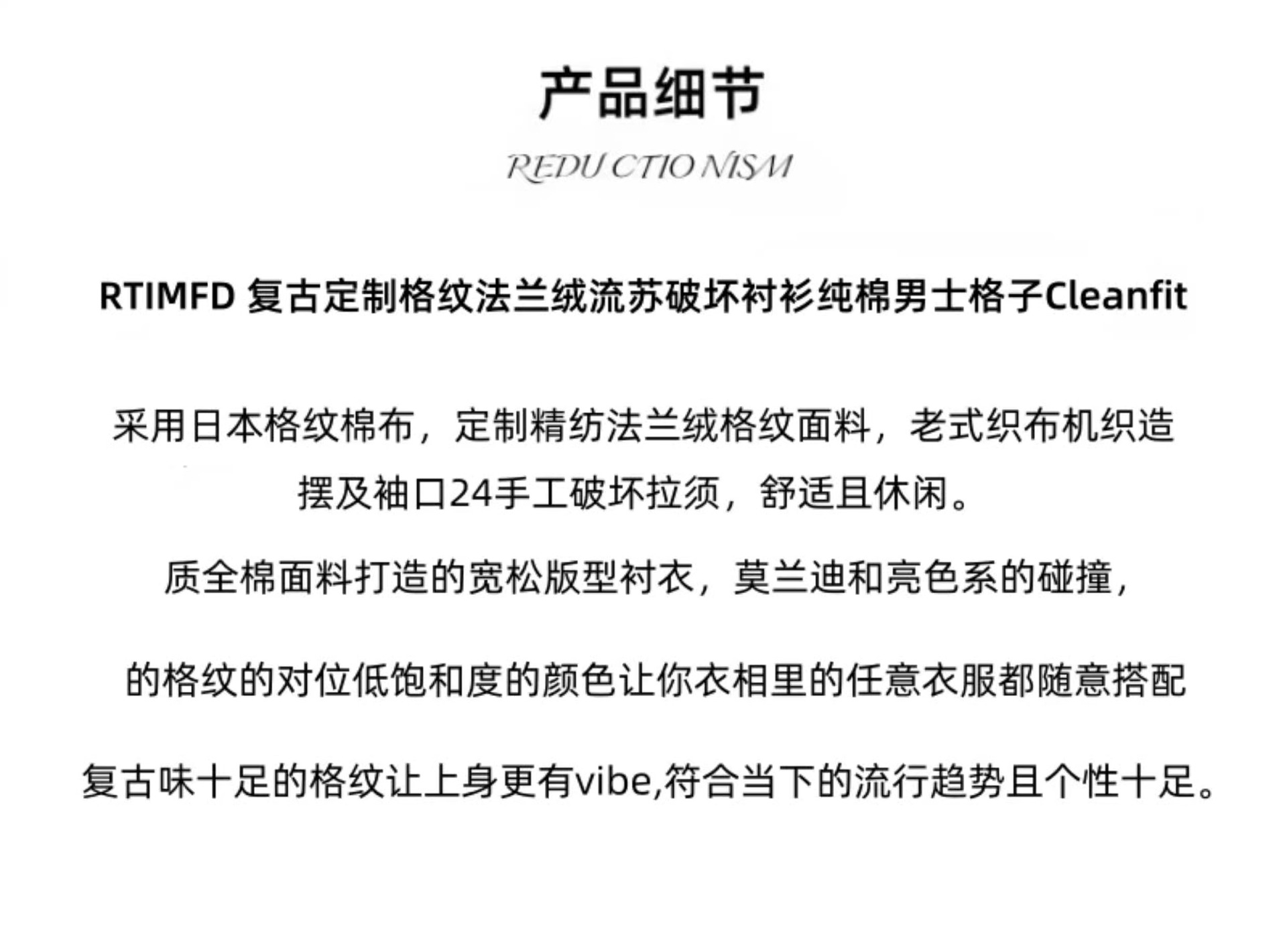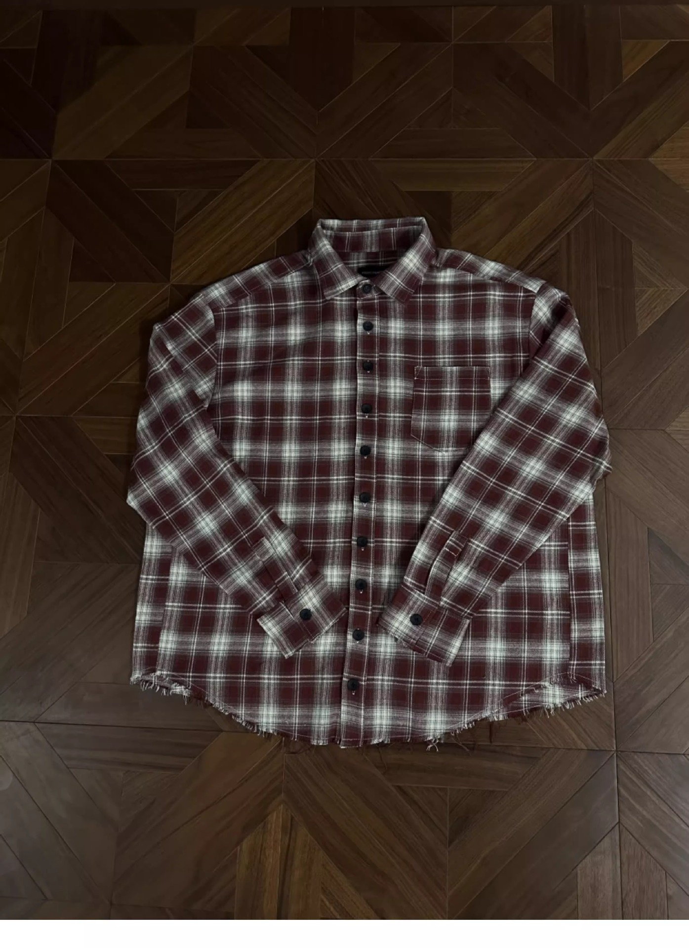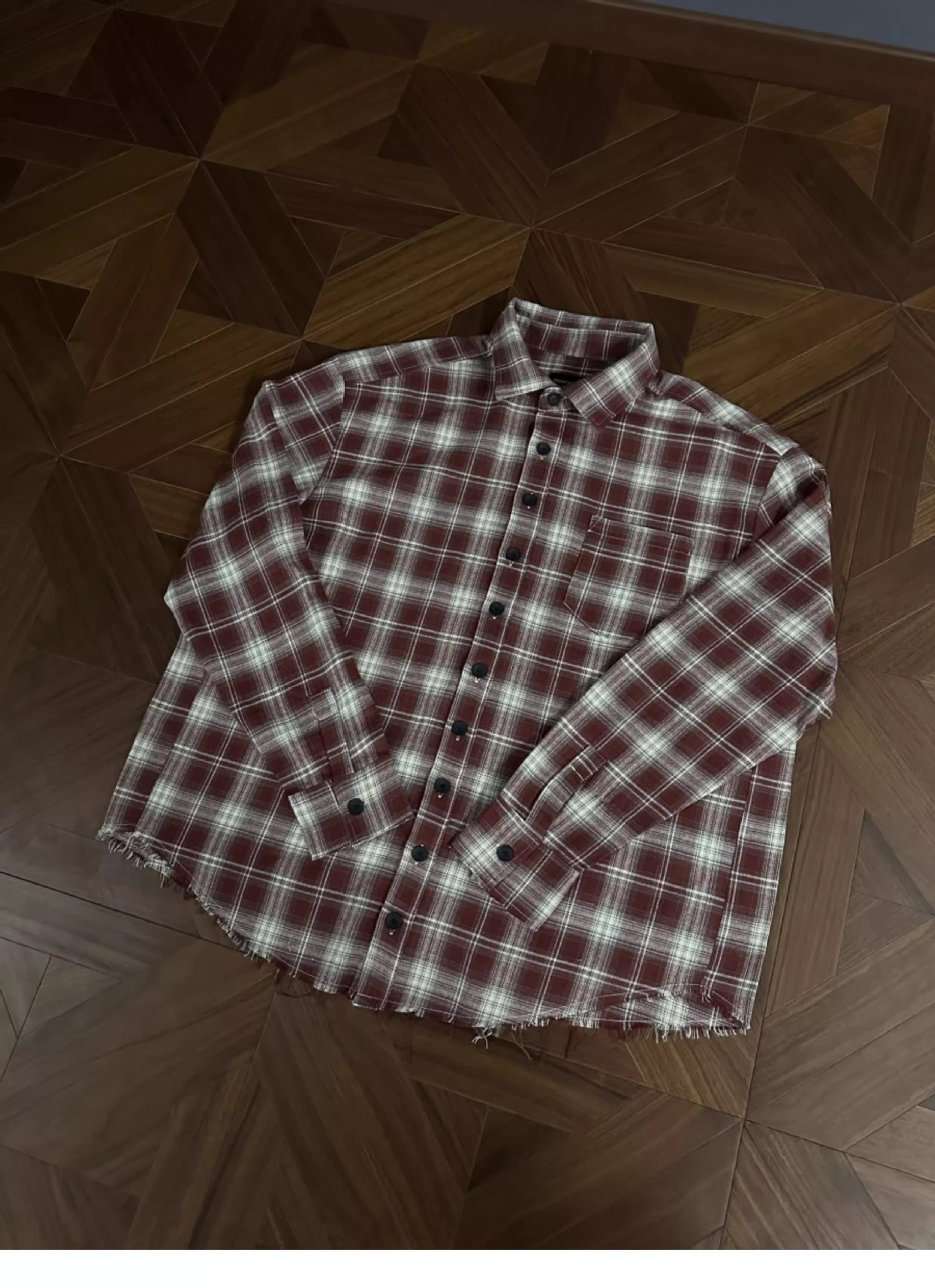 RTIMFD 레트로 더블 라인 미세 격자 무늬 플래넬 술 파괴 셔츠 면 남성용 격자 무늬 클렌핏스토어 가기