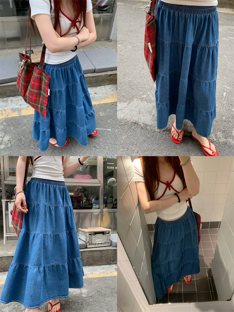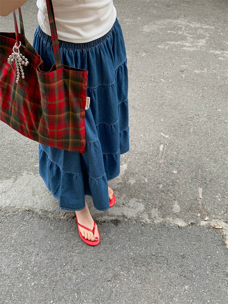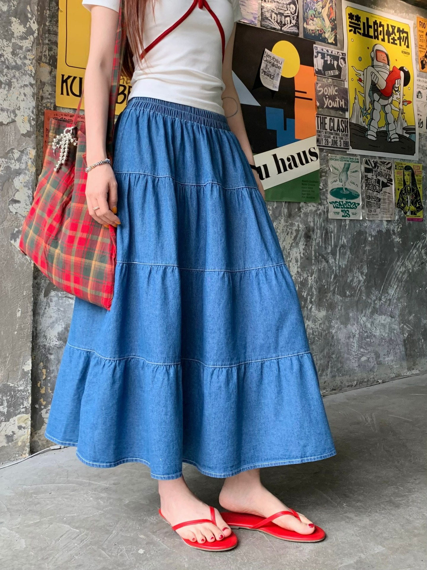 2025 ~ 빈티지 데님 케이크 긴 치마/엘랩토 허리