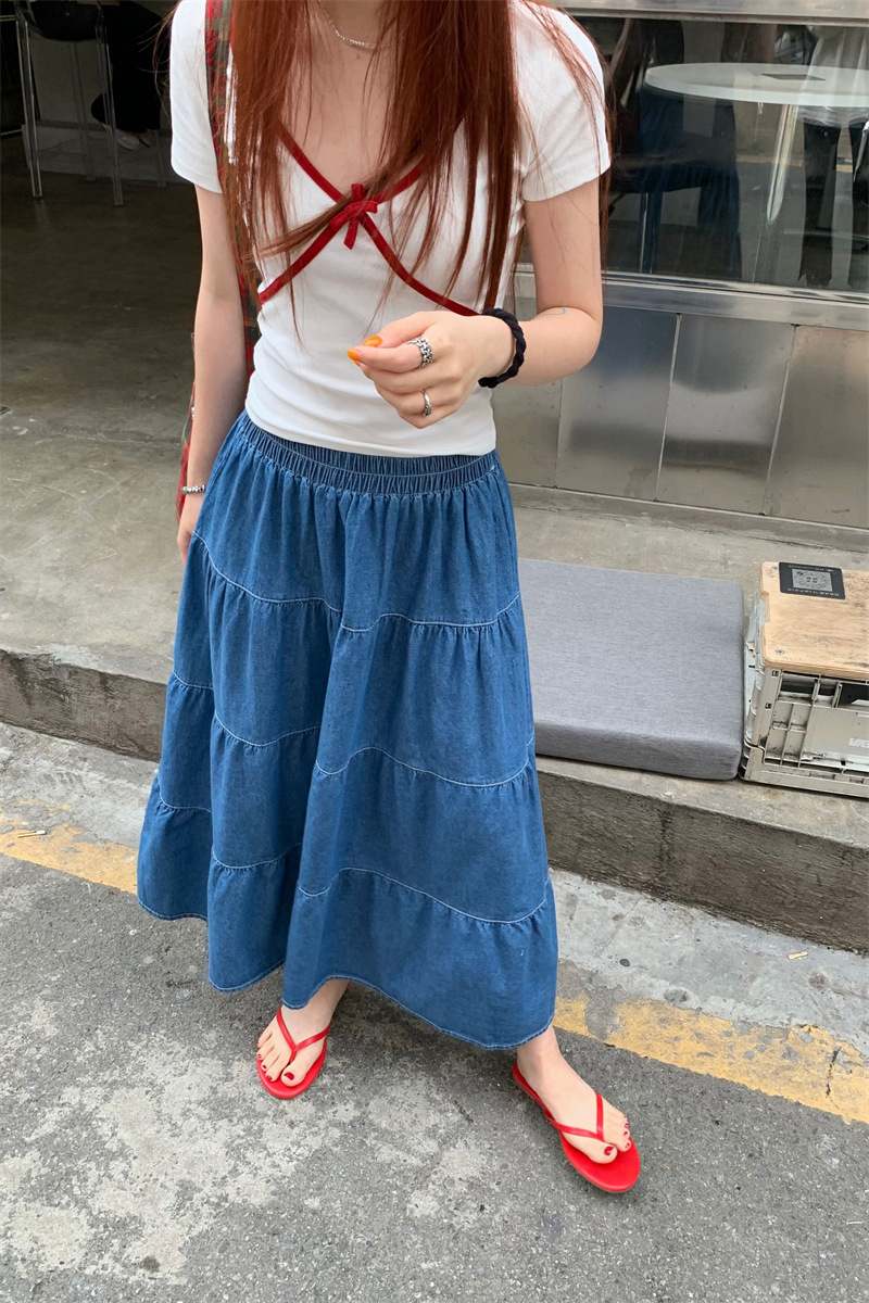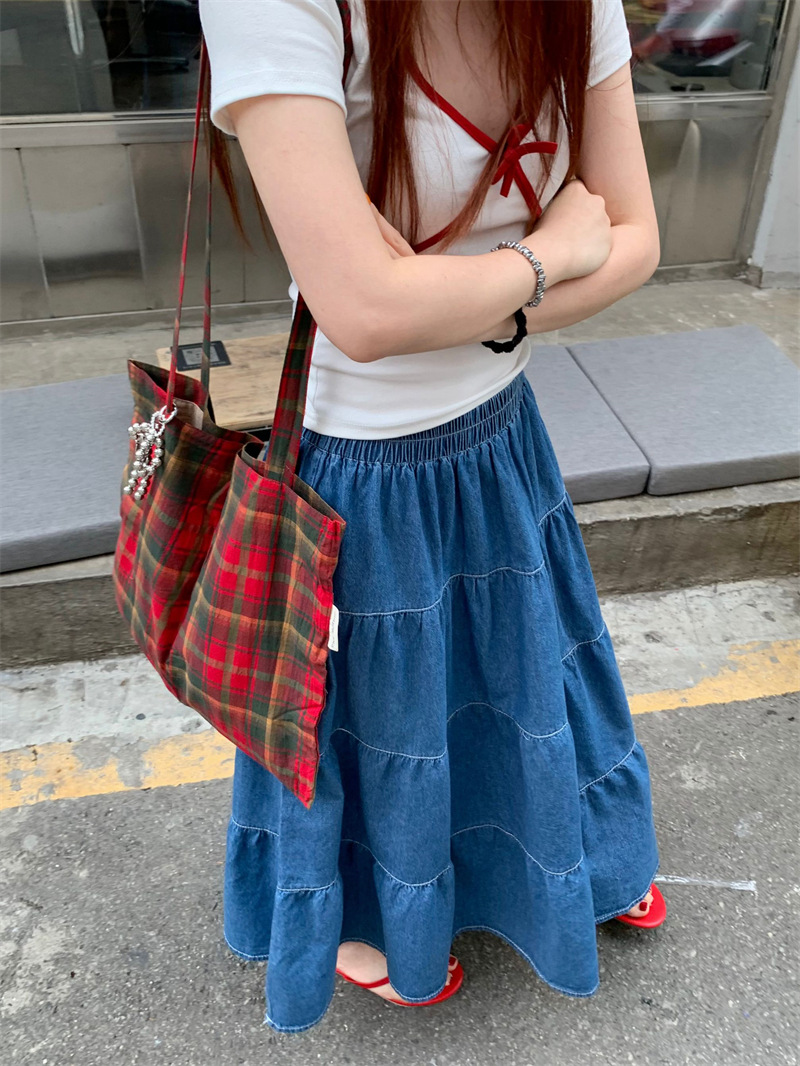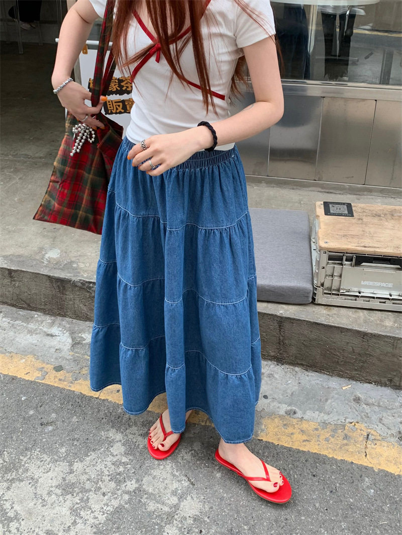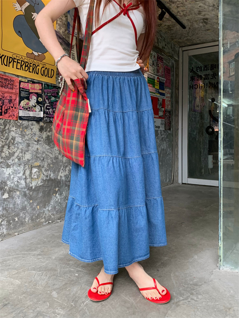 2025 ~ 빈티지 데님 케이크 긴 치마/엘랩토 허리