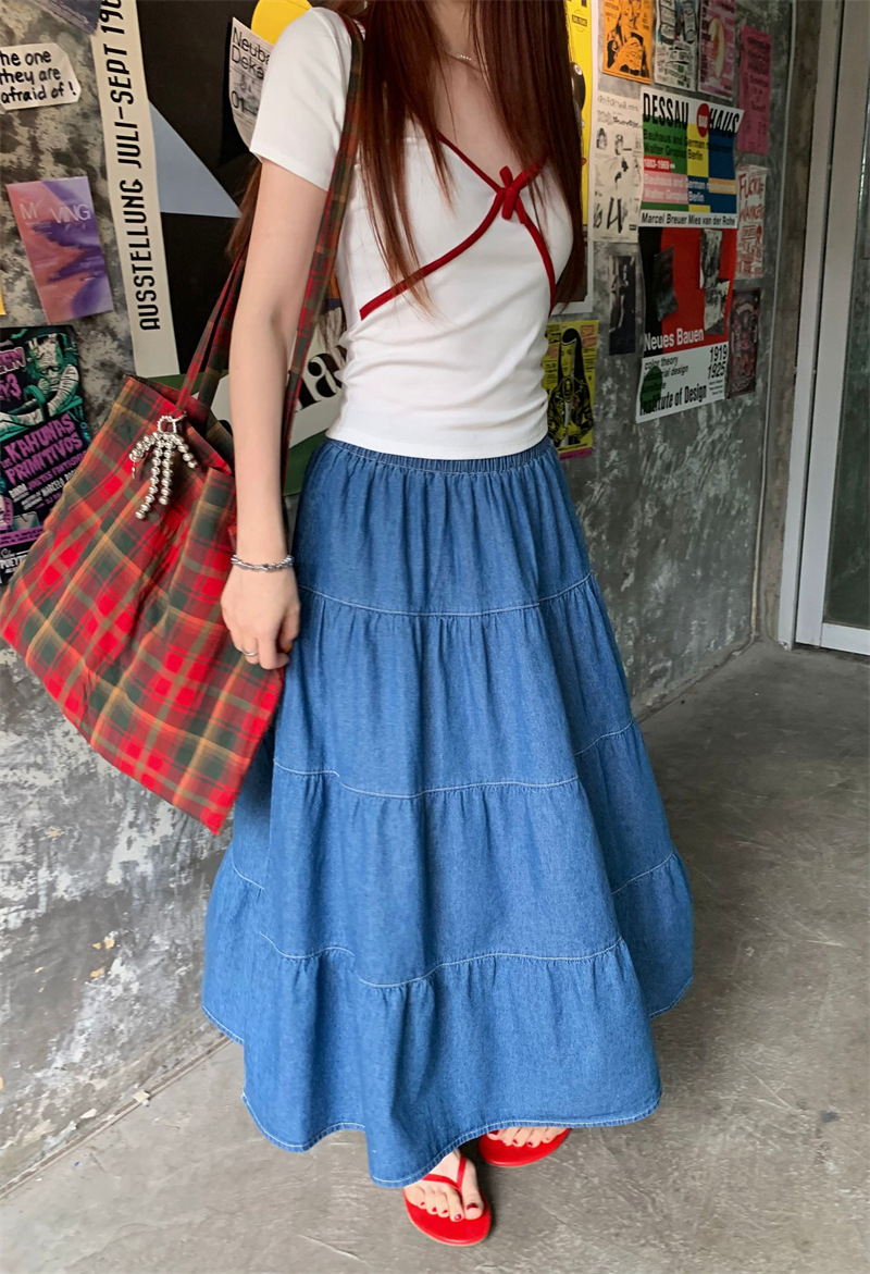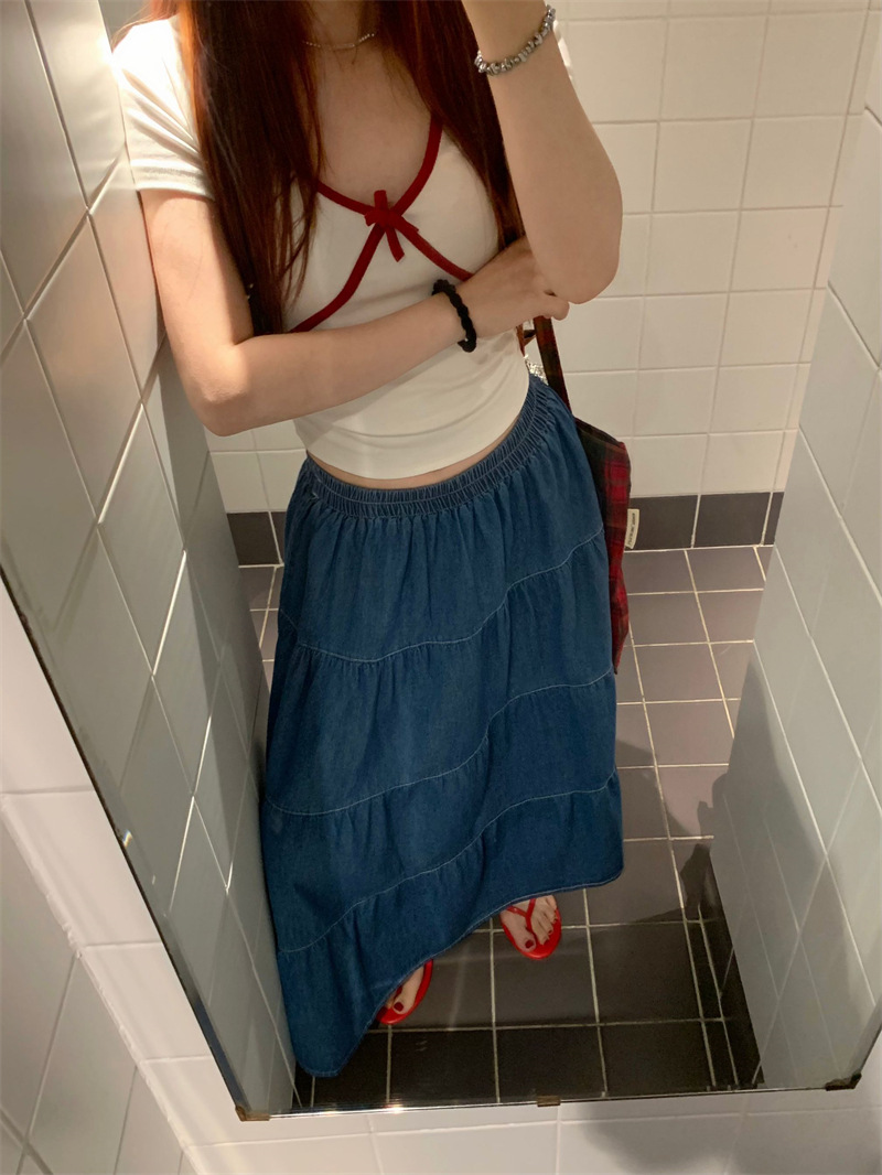 2025 ~ 빈티지 데님 케이크 긴 치마/엘랩토 허리스토어 가기