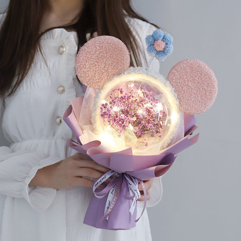 • .( • ̀Ω•́ ) 핑크 안개꽃 + 미키 머리띠 + 선물가방 + 램프 ( • ̀Ω•́ )
