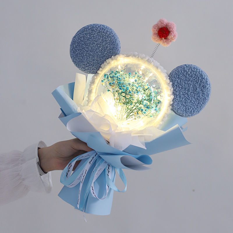 • .( • ̀Ω•́ ) 블루 안개꽃 + 미키 머리띠 + 선물가방 + 램프 ( • ̀Ω•́ )