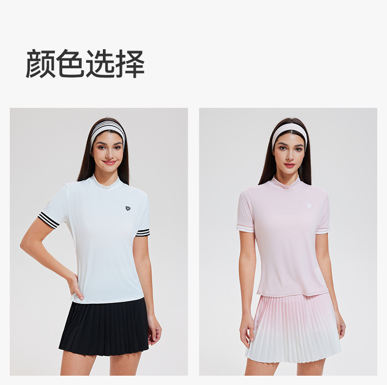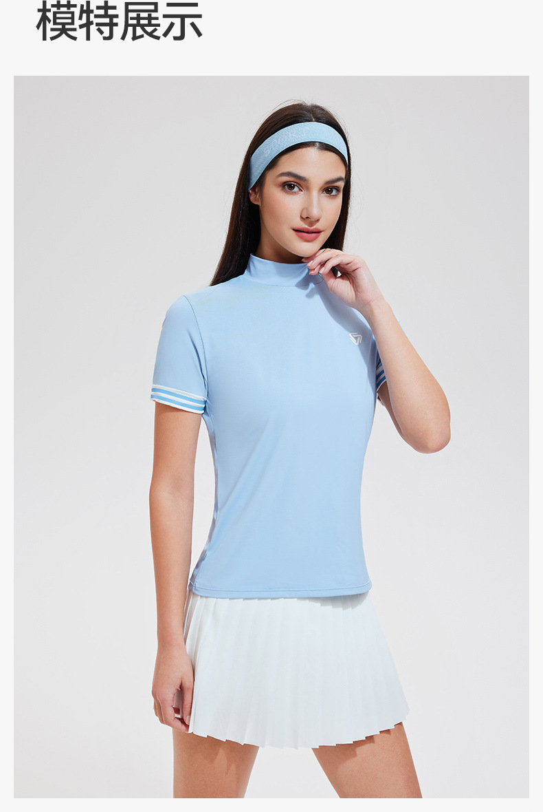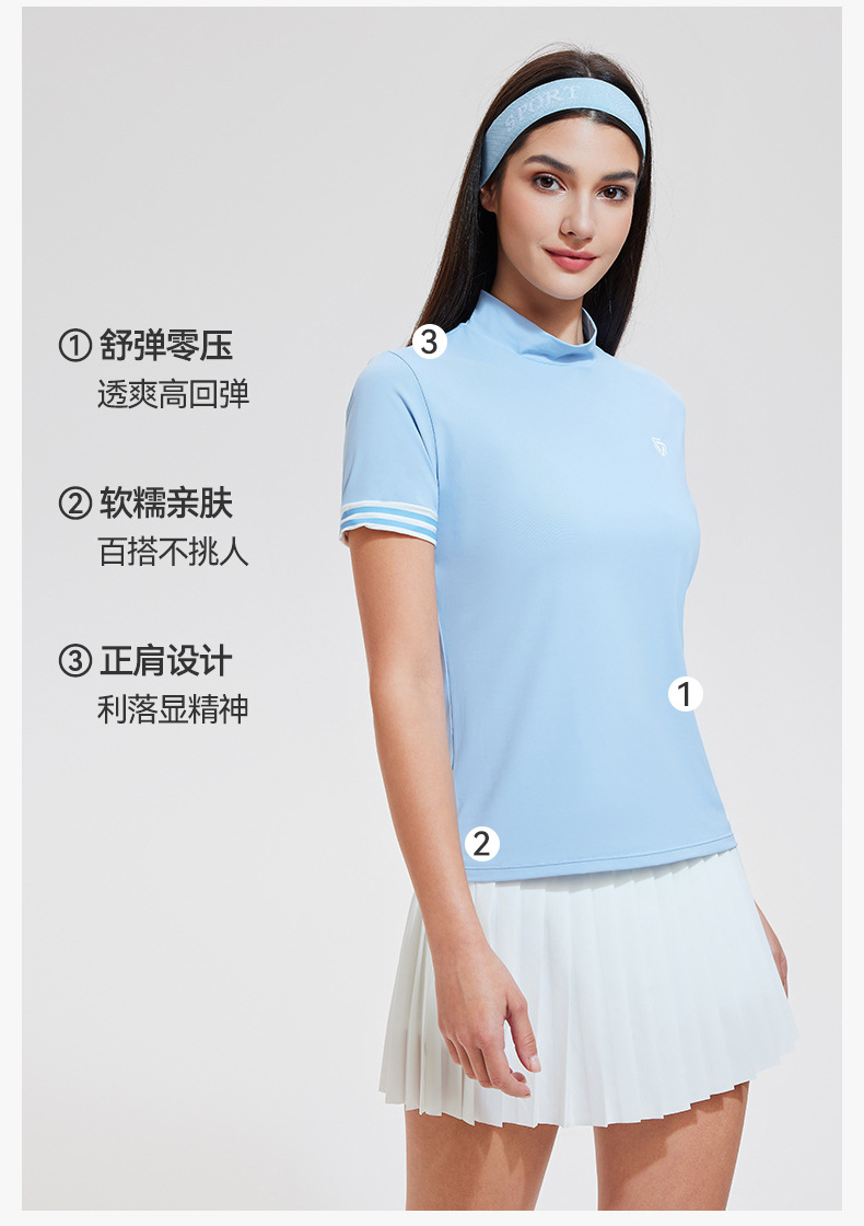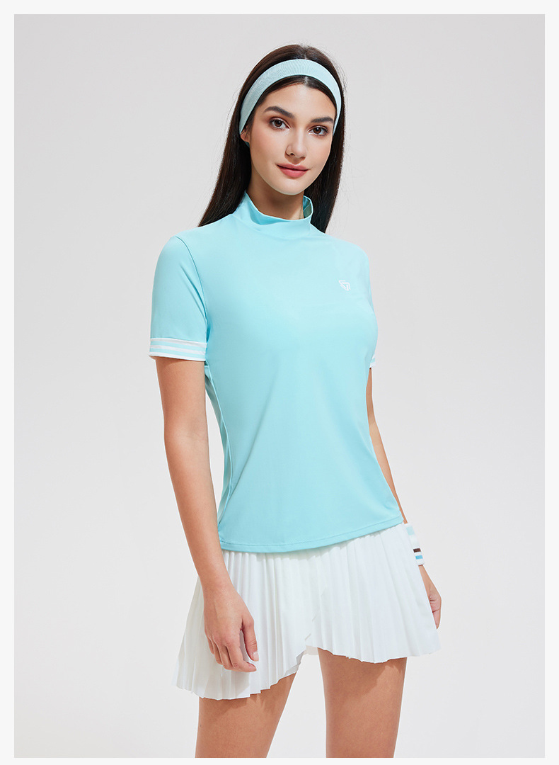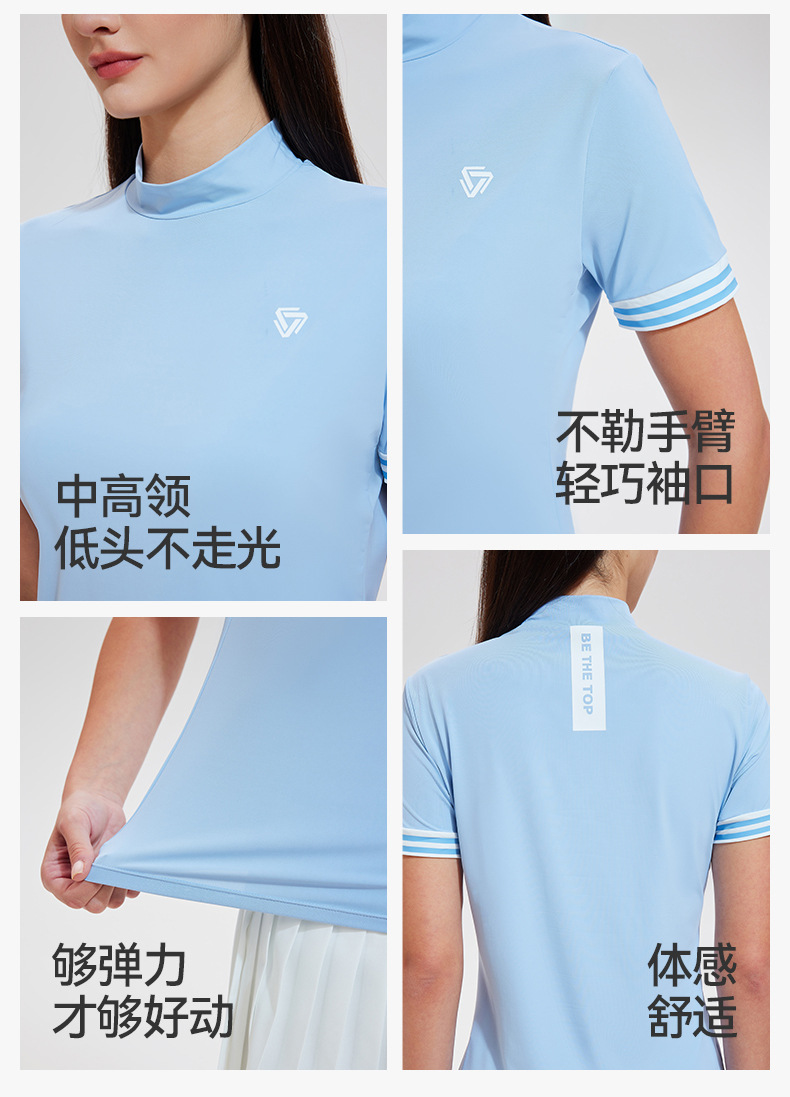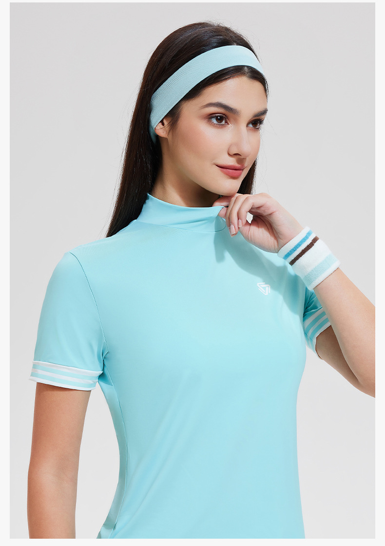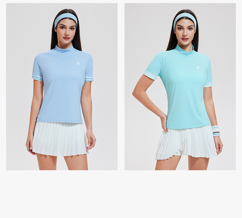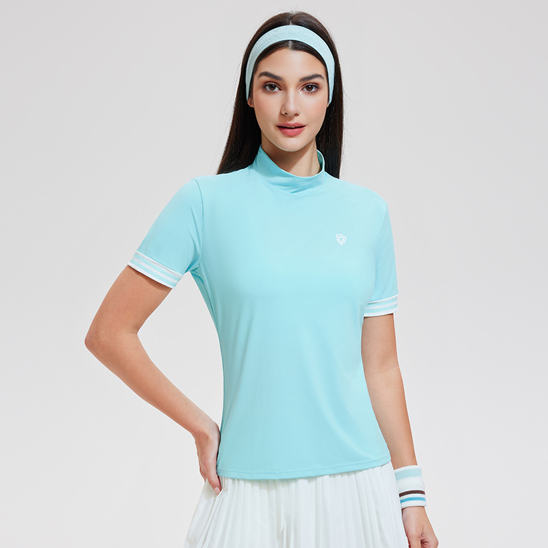 여성을위한 새로운 하프 터틀넥 스포츠 탑 여름 반팔 골프웨어 티셔츠 슬림 통기성 하이 엔드 피트니스웨어