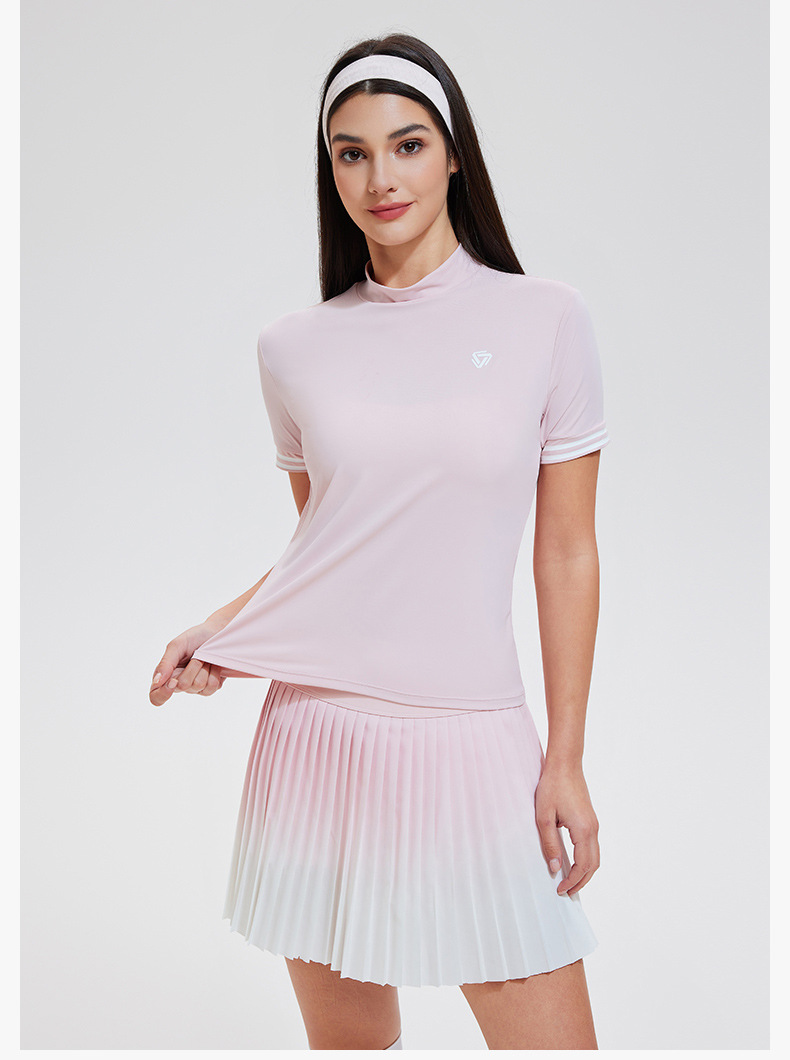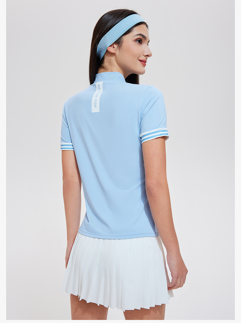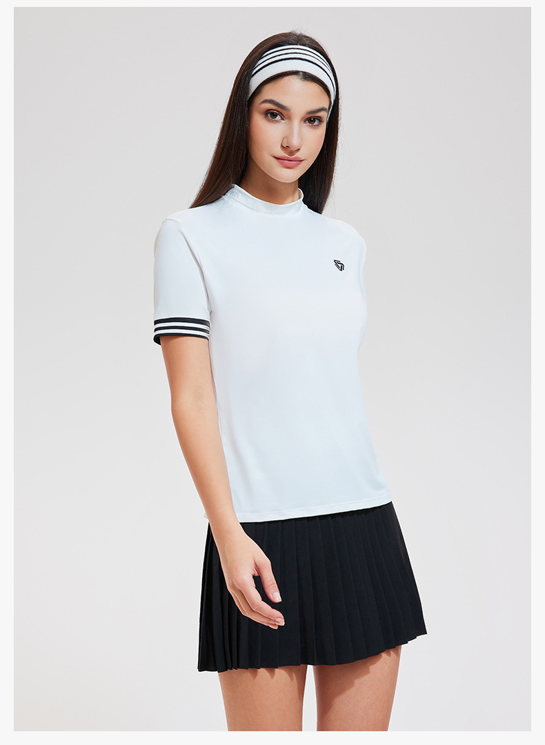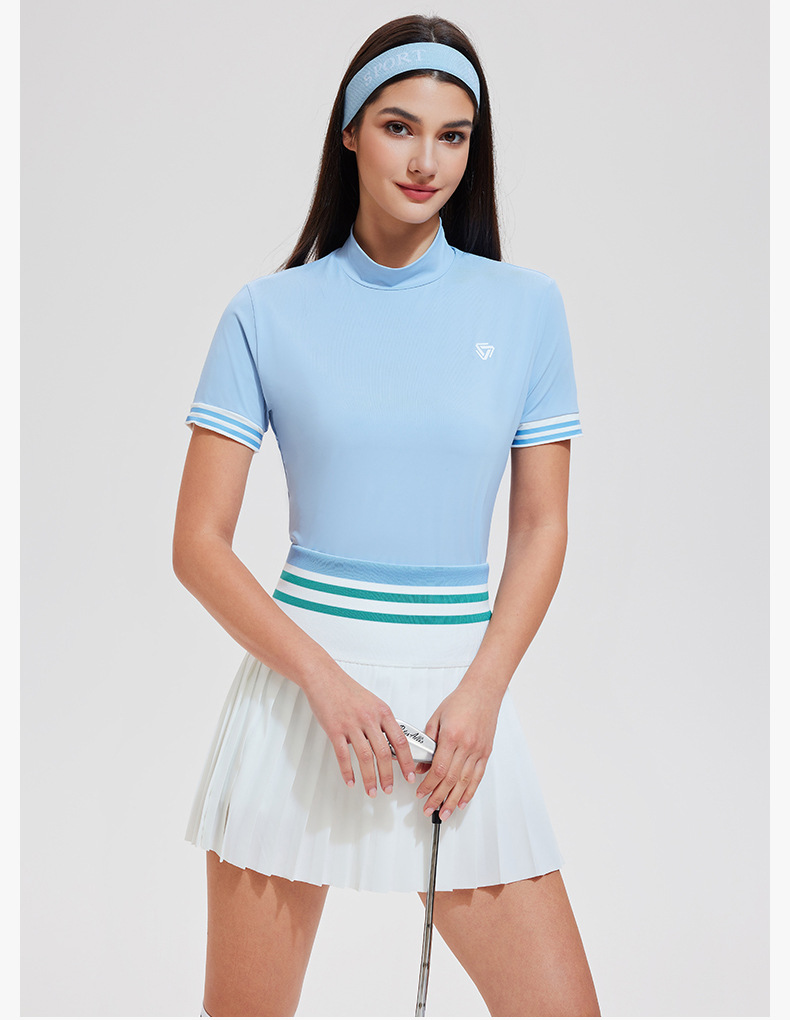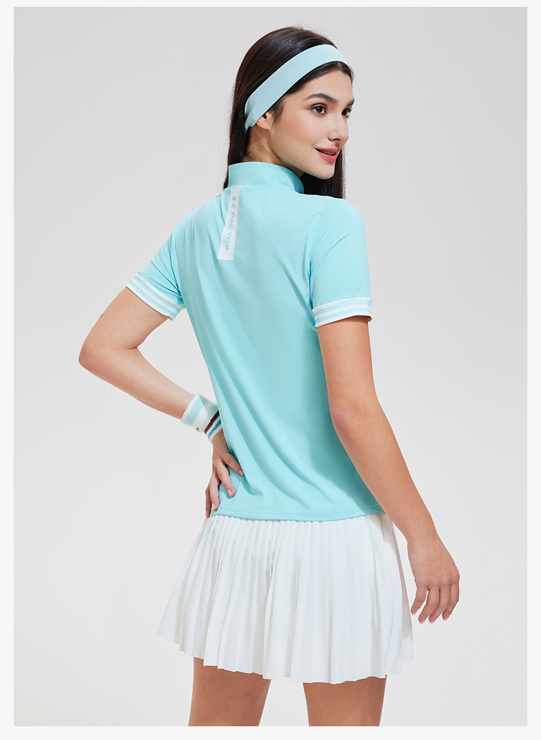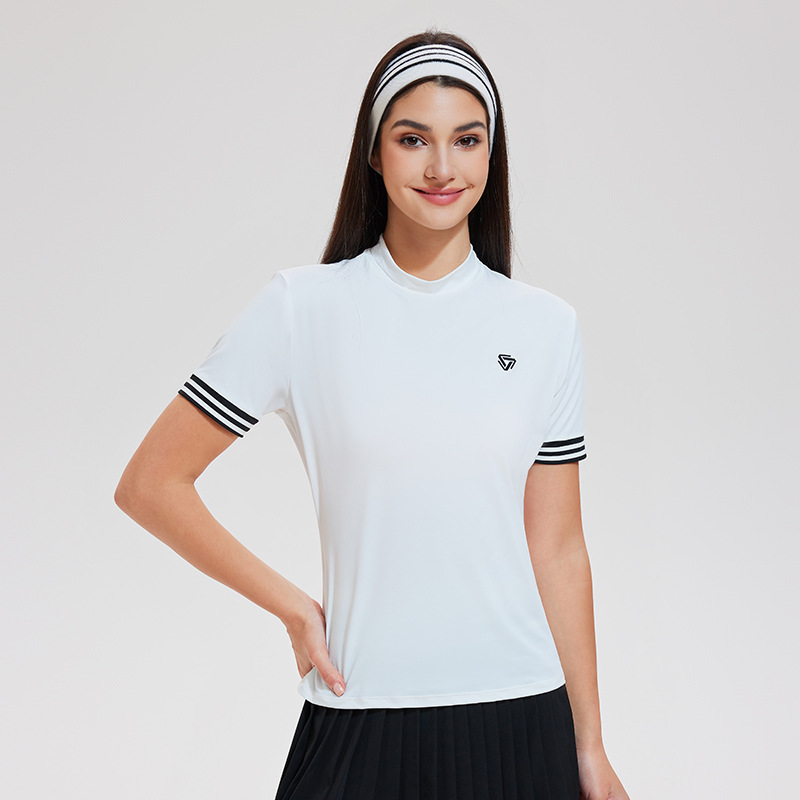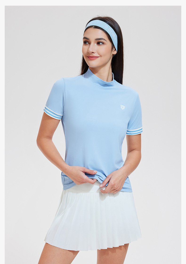 여성을위한 새로운 하프 터틀넥 스포츠 탑 여름 반팔 골프웨어 티셔츠 슬림 통기성 하이 엔드 피트니스웨어