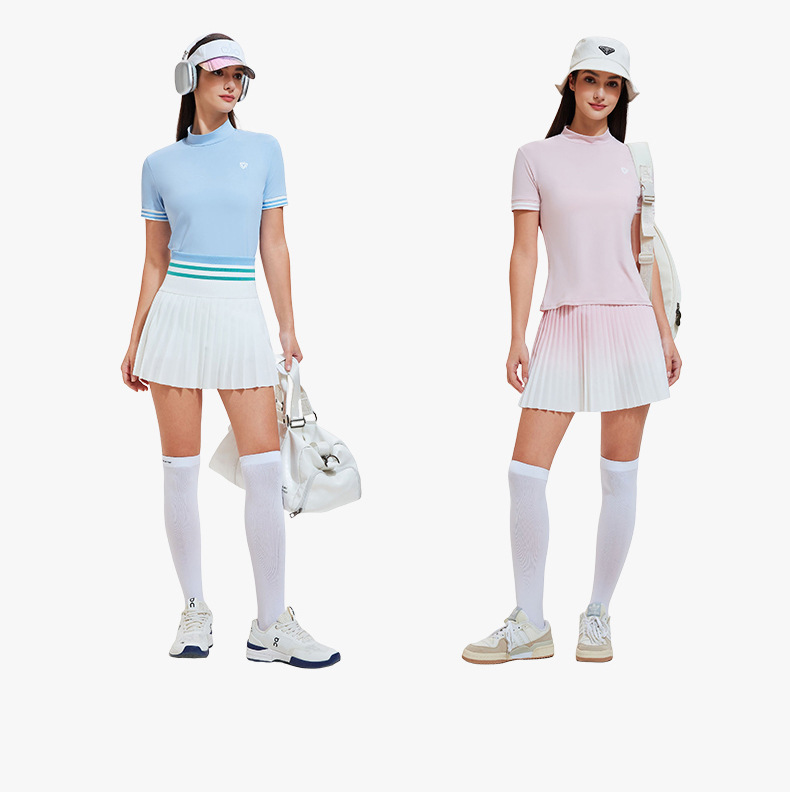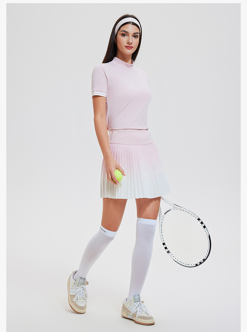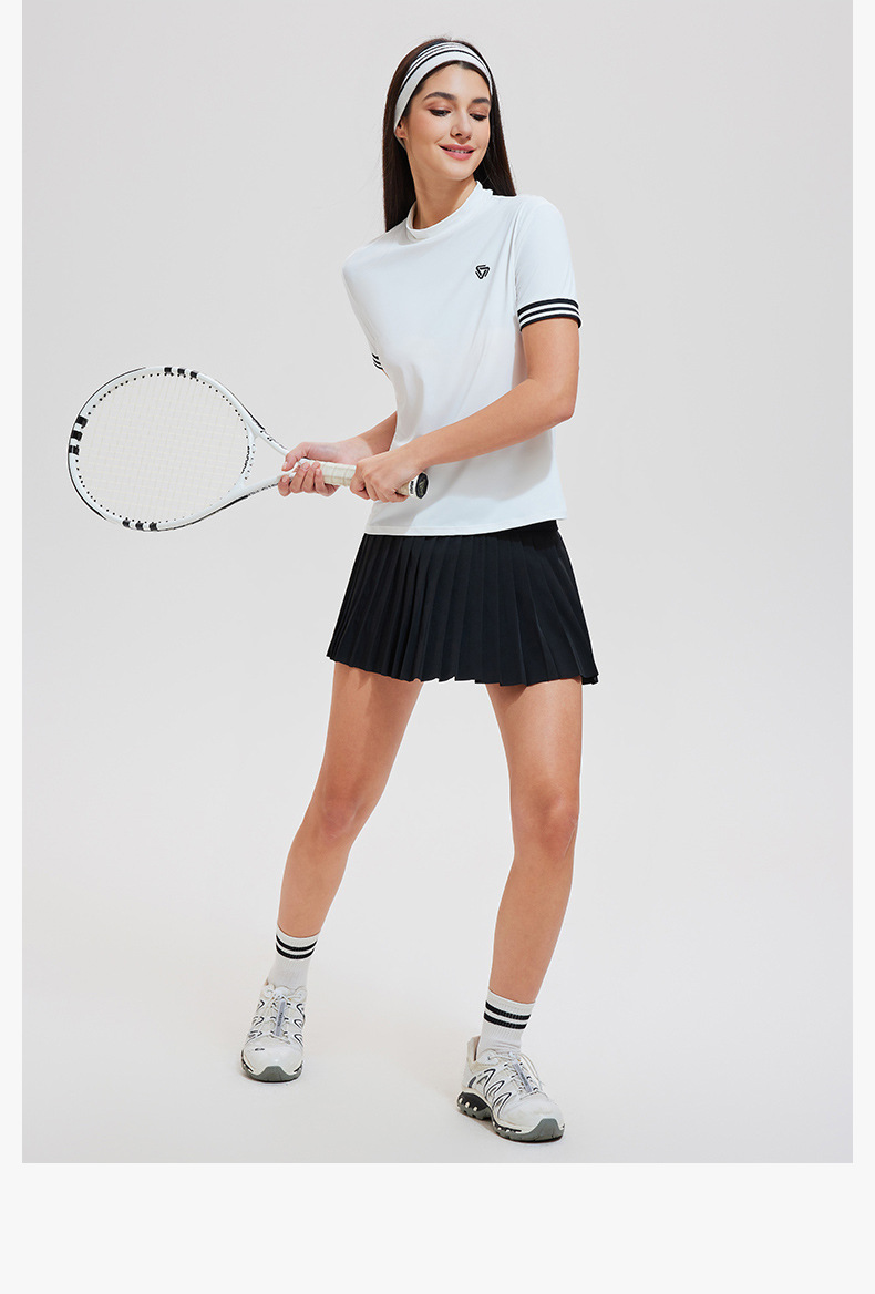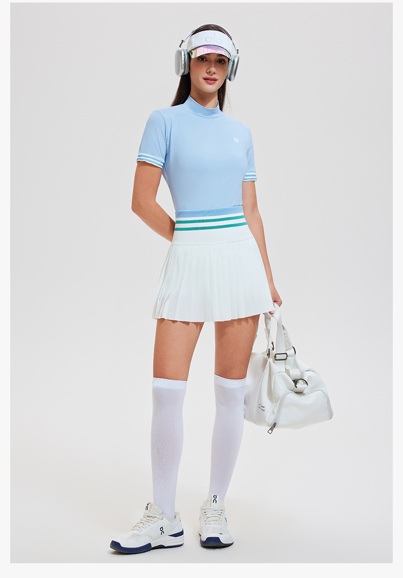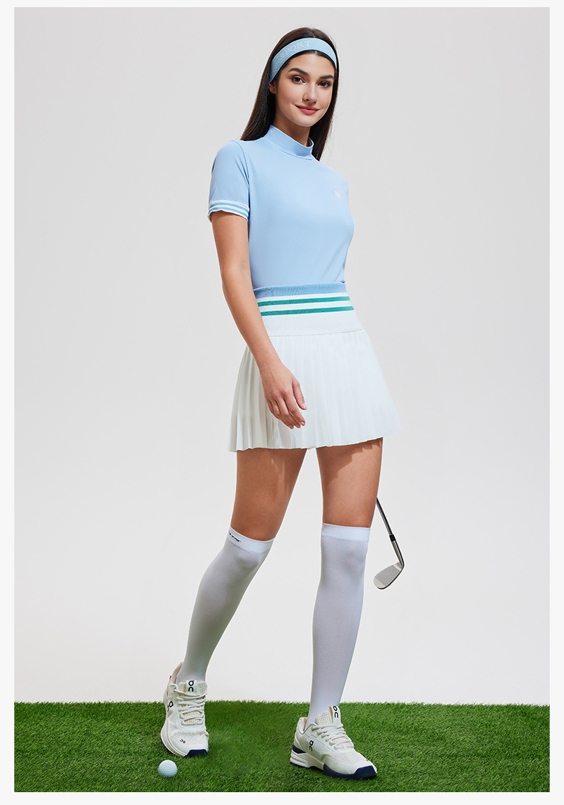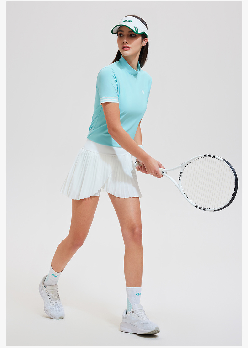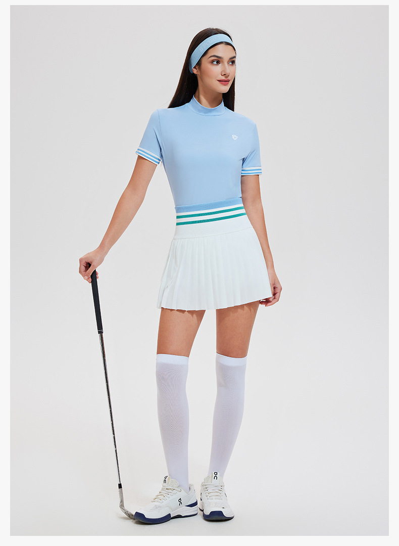 여성을위한 새로운 하프 터틀넥 스포츠 탑 여름 반팔 골프웨어 티셔츠 슬림 통기성 하이 엔드 피트니스웨어