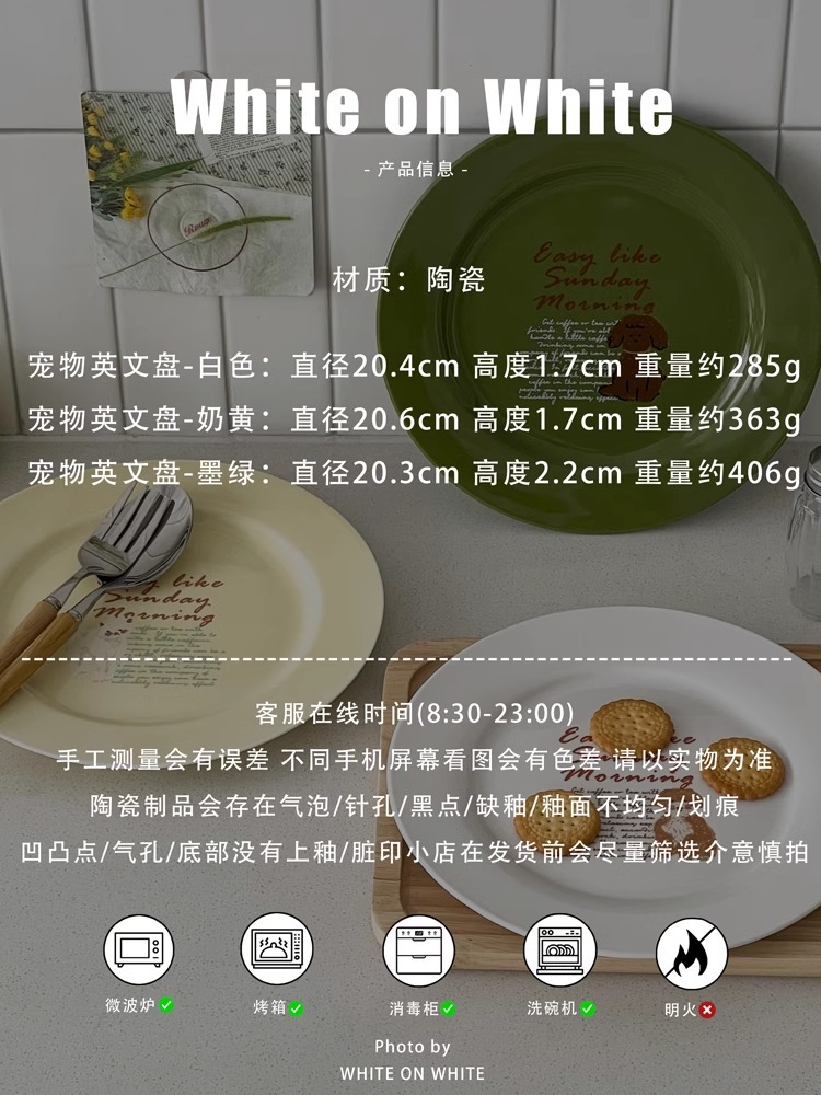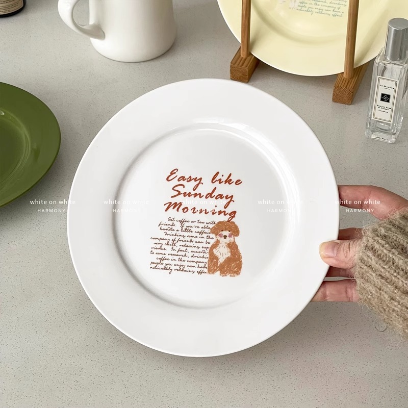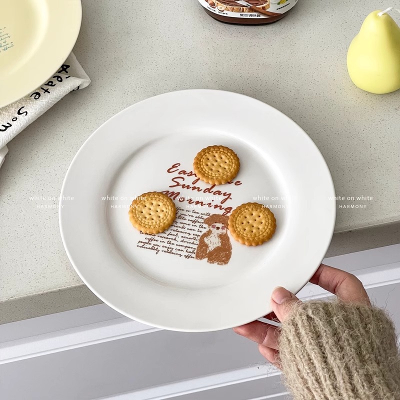 2025 새로운 플레이트 홈 하이 엔드 센스 럭셔리 8 인치 플랫 플레이트 빵 케이크 플레이트 귀여운 세라믹 디저트 플레이트스토어 가기