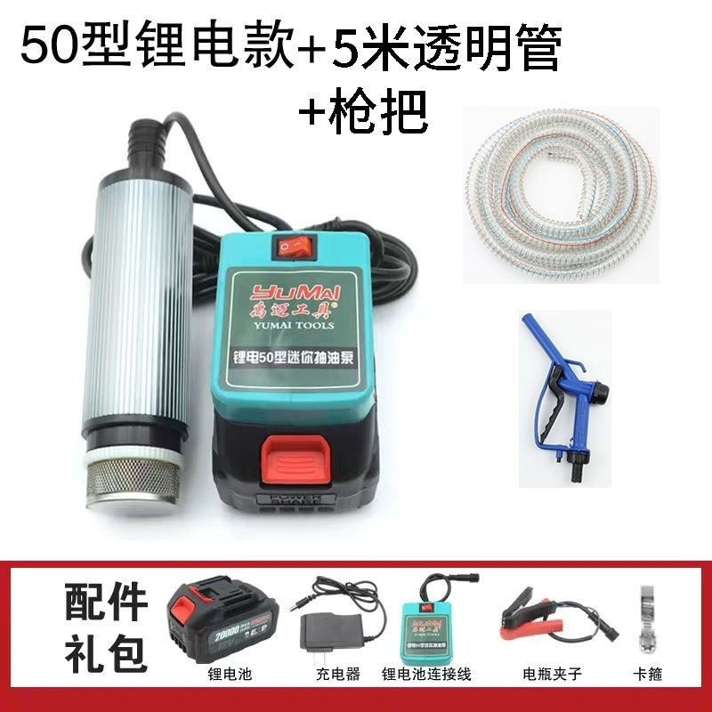• 유형 50 리튬 배터리 오일 펌프(직경 5cm - 펌프 + 5m 투명 튜브 + 건 핸들)