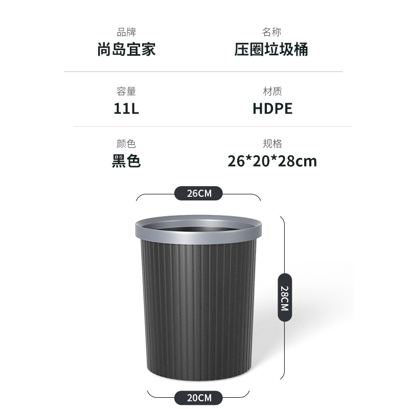 ✅프레스 링 대형 쓰레기통 11L 단색 검은 부엌 저장 빈 가정용 쓰레기통