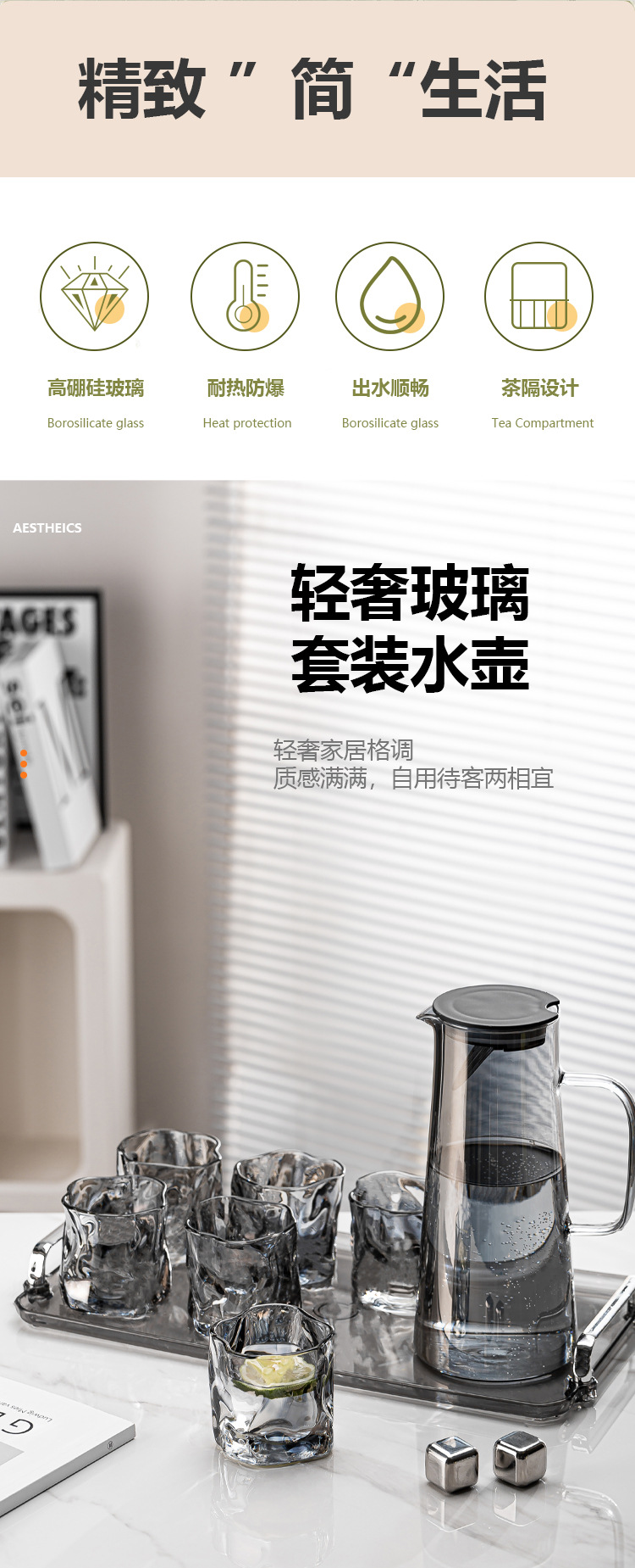 워터 컵 가정용 세트 라이트 럭셔리 컵 냉수 주전자 유리 컵 거실 높은 가치의 식수 컵 냉수 주전자스토어 가기