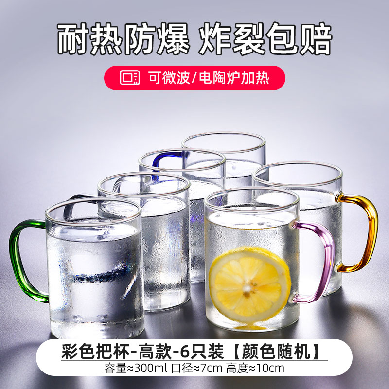 • 컬러풀한 컵 - 톨 스타일 - 6개입 [색상 랜덤] 고붕소 유리로 심한 온도차에도 강함