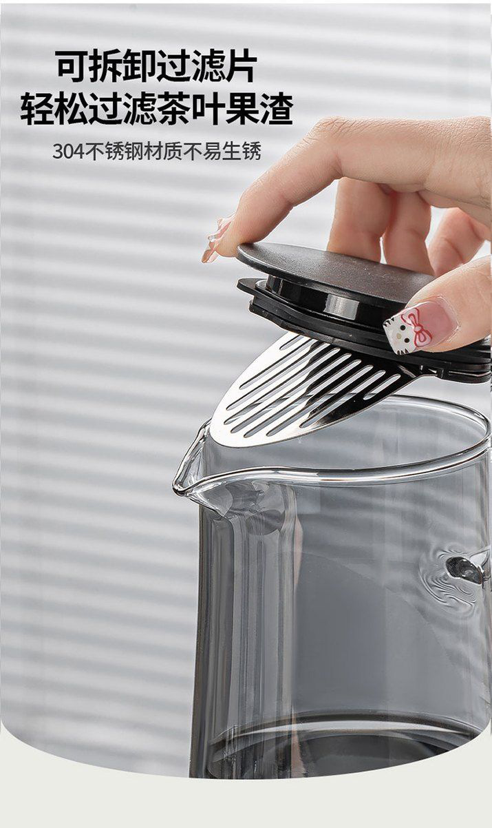 • 스모크 그레이 주전자 - 1600ML - 1냄비, 6컵 + 트레이, 새롭게 업그레이드 [고가성비] [끓는 물 직접 투입, 파손 보장]