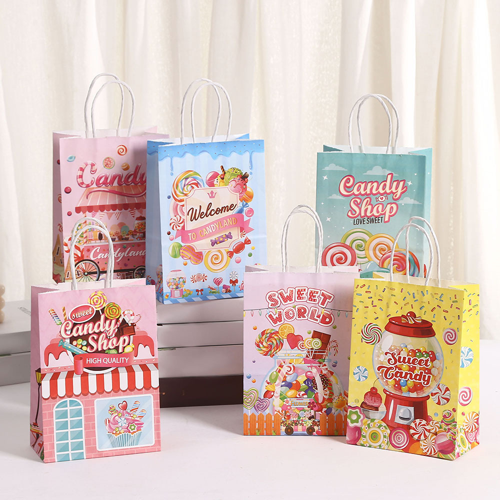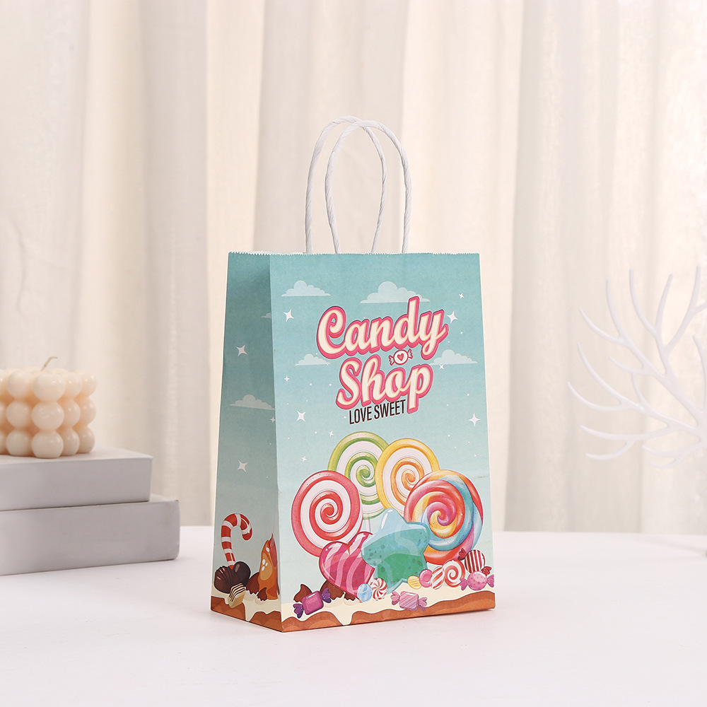 캔디 파티 선물 가방 도매 쇼핑 가방 휴일 테이크 아웃 가방 의류 포장 가방 인쇄 크래프트 종이 핸드백스토어 가기