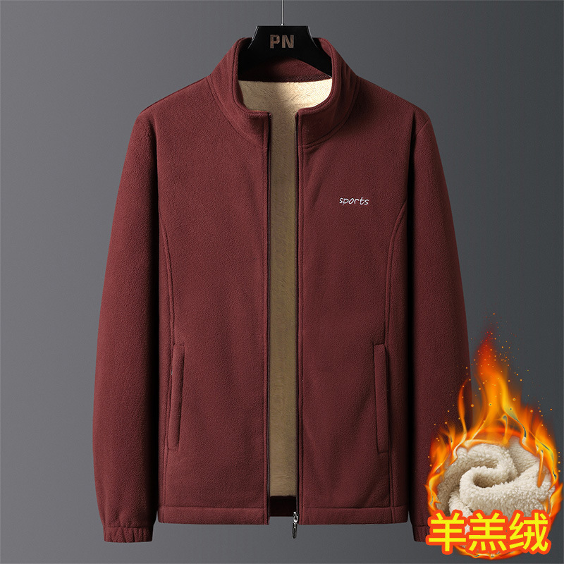 2024 양털 스웨터 남성 기모 두꺼운 양고기 양털 코트 스포츠 카디건 재킷 코트 아빠 복장스토어 가기