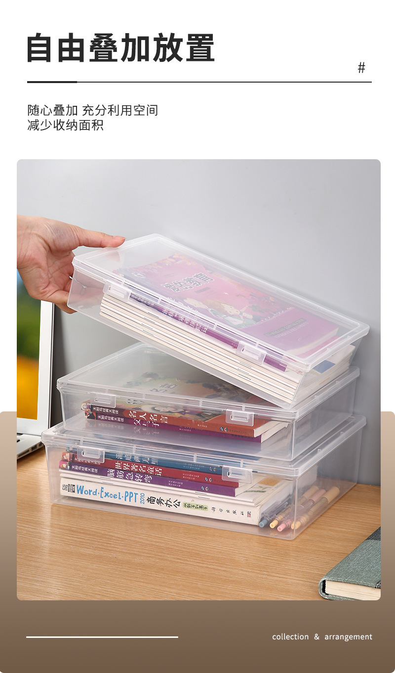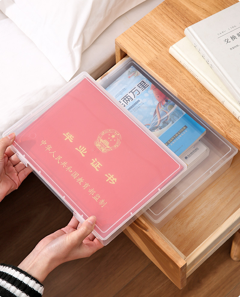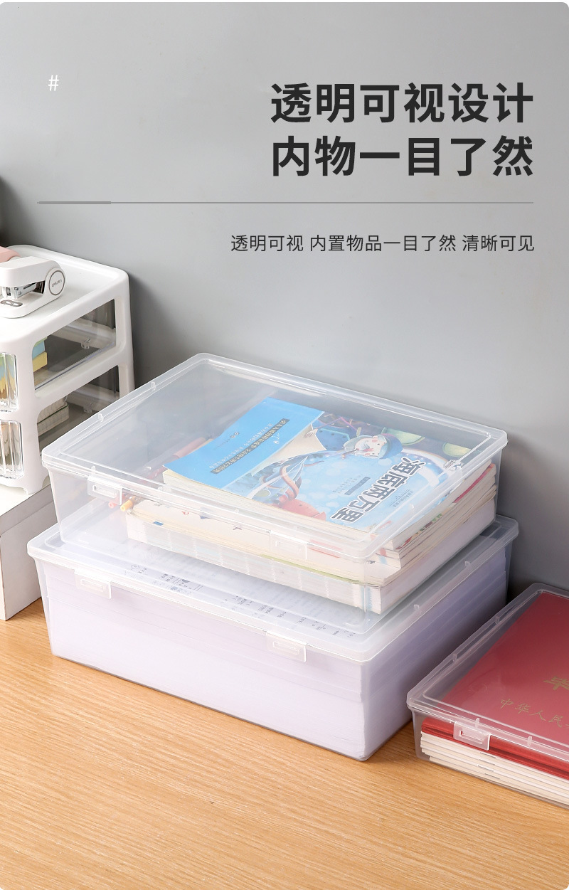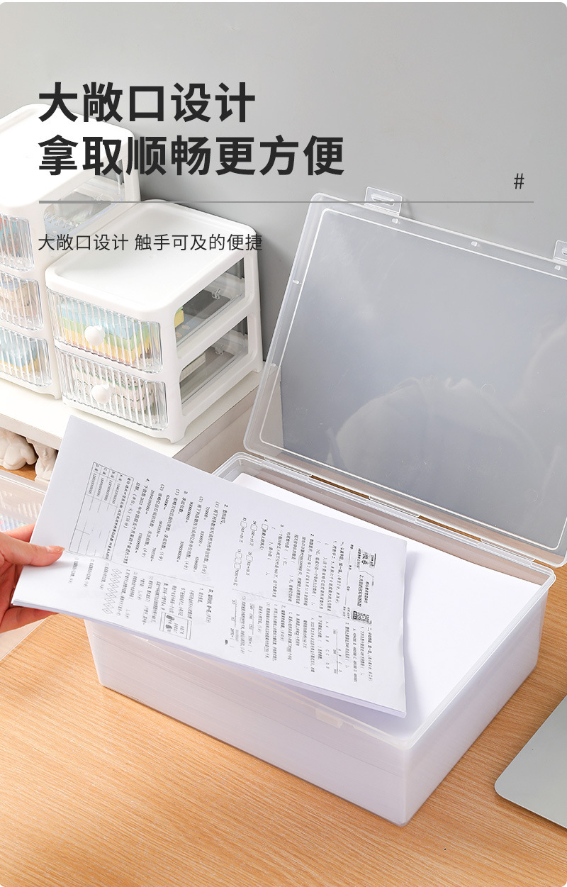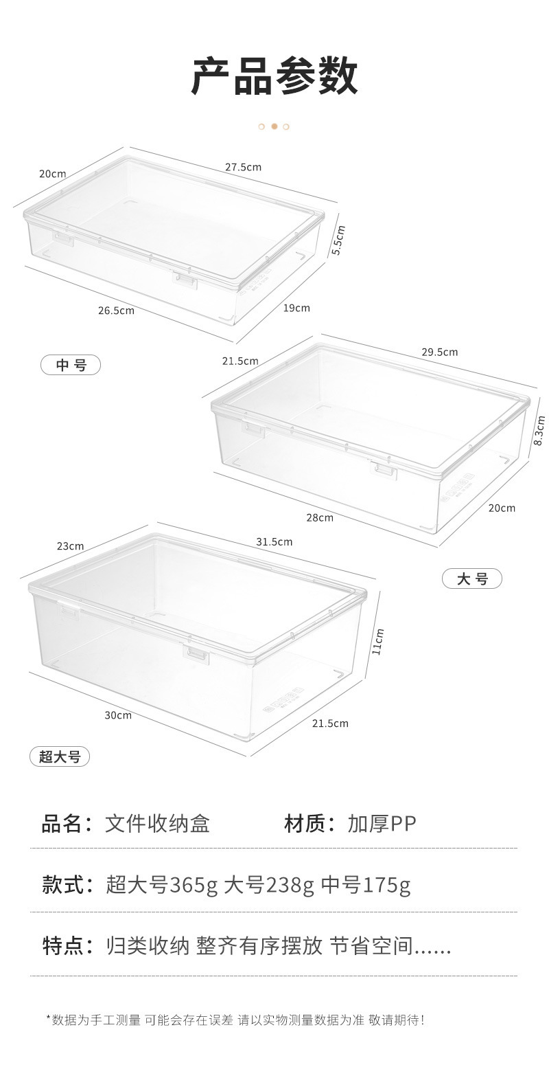 ✅파일 저장 상자 새로운 대형 서랍은 보관 용 뚜껑이있는 반투명 직사각형 플라스틱 상자를 구성합니다.