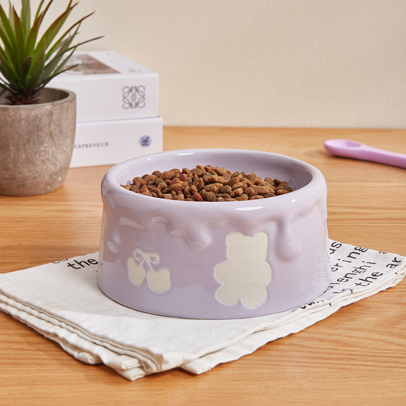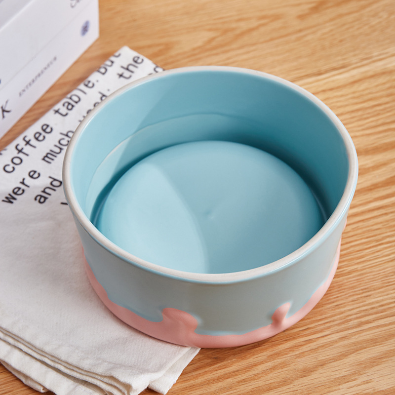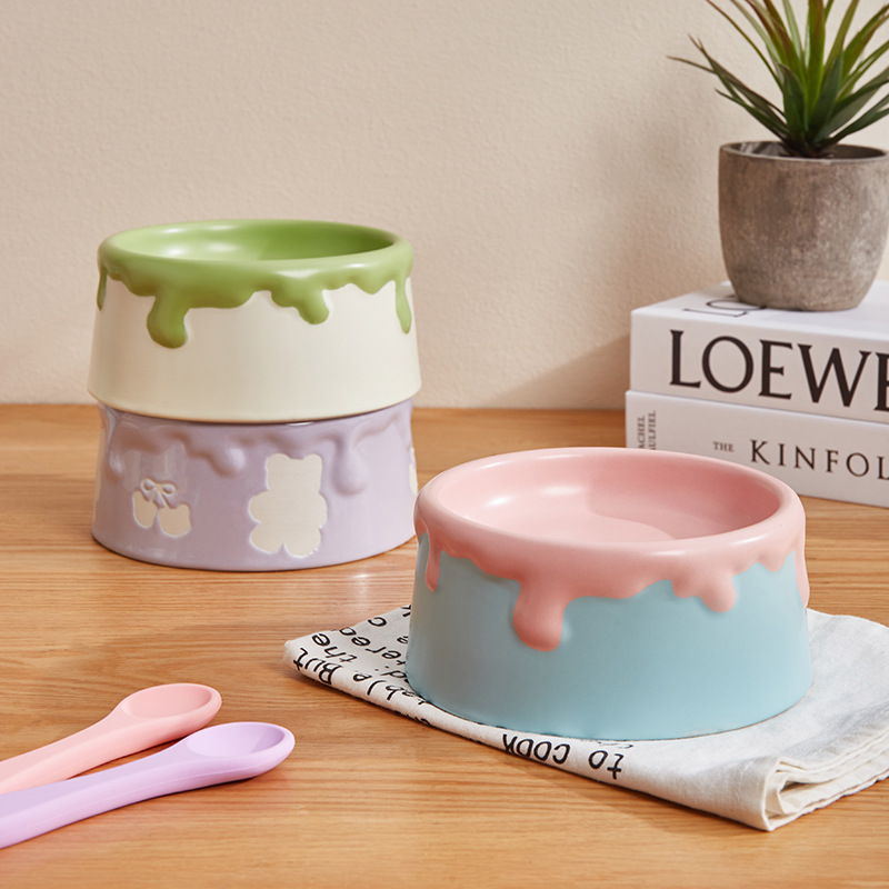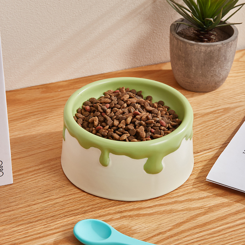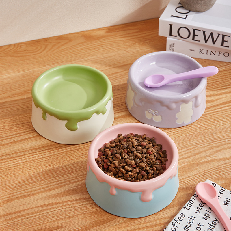 고양이 밥그릇, 높이가 있는 세라믹 고양이 밥그릇, 애완동물 밥그릇, 경사진 입구로 목 보호, 허니팟 모양, 넘어짐 방지, 검은 턱 방지, 세라믹 소재, 새끼 고양이용스토어 가기