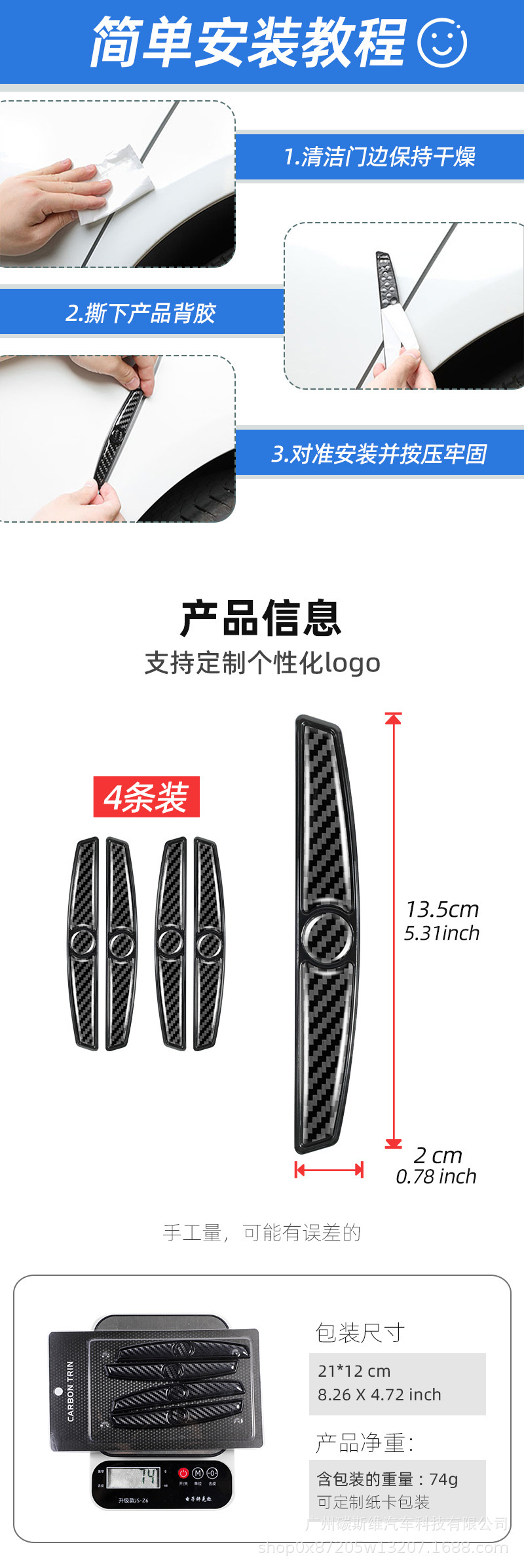국경 간 탄소 섬유 패턴 자동차 도어 충돌 방지 스트립 안티 스크래치 보호 바디 에지 장식 스티커 광저우스토어 가기