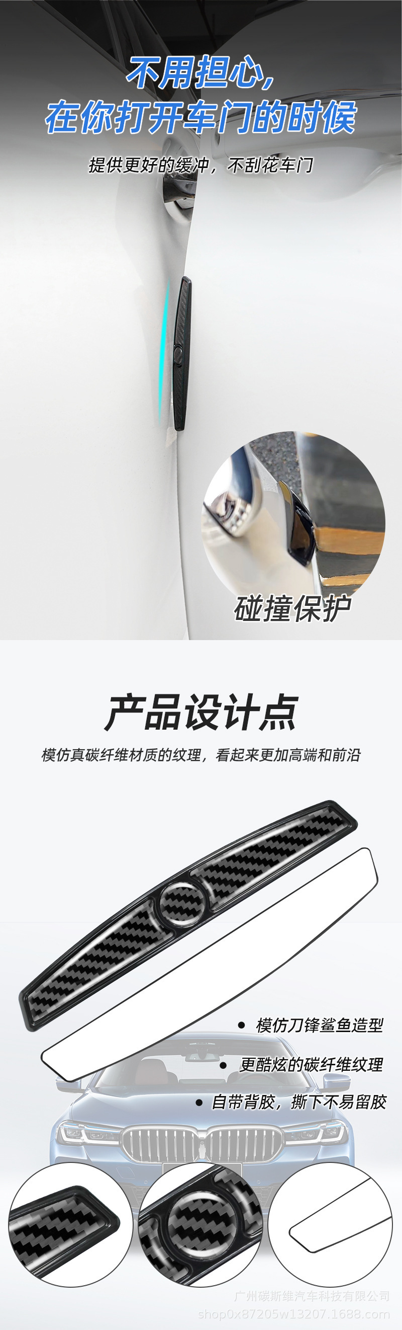 국경 간 탄소 섬유 패턴 자동차 도어 충돌 방지 스트립 안티 스크래치 보호 바디 에지 장식 스티커 광저우