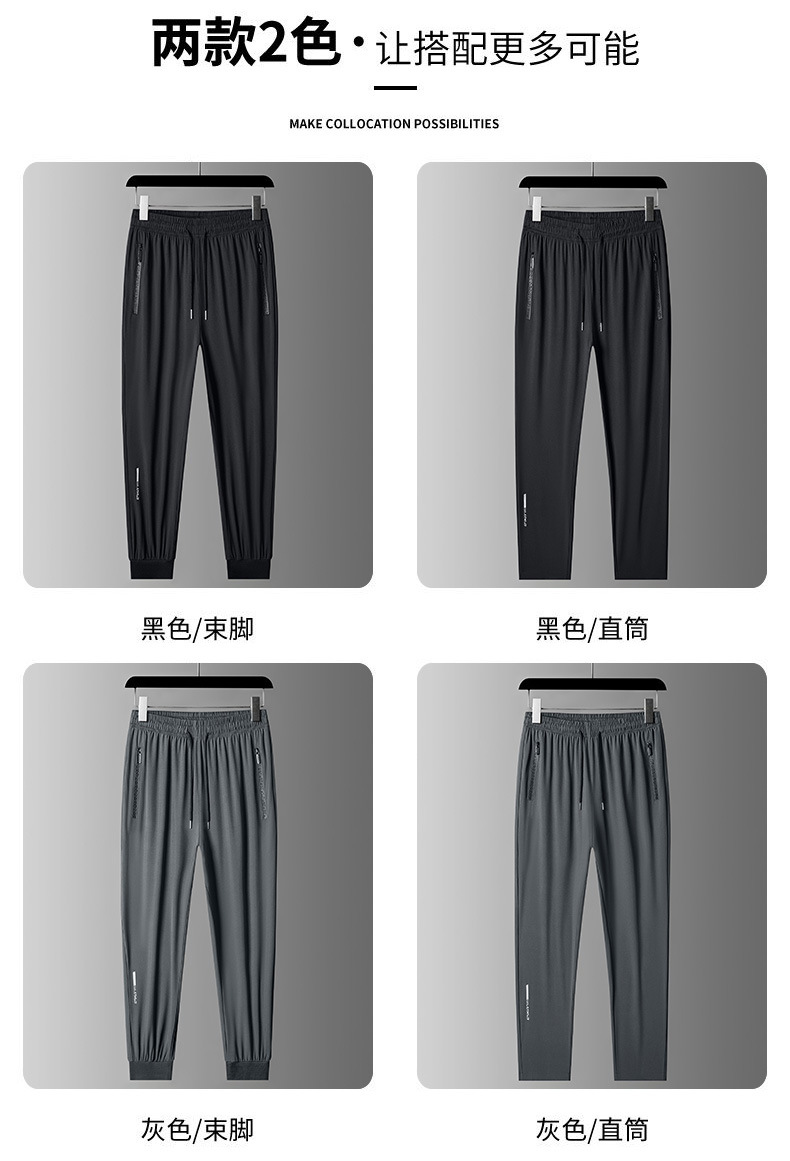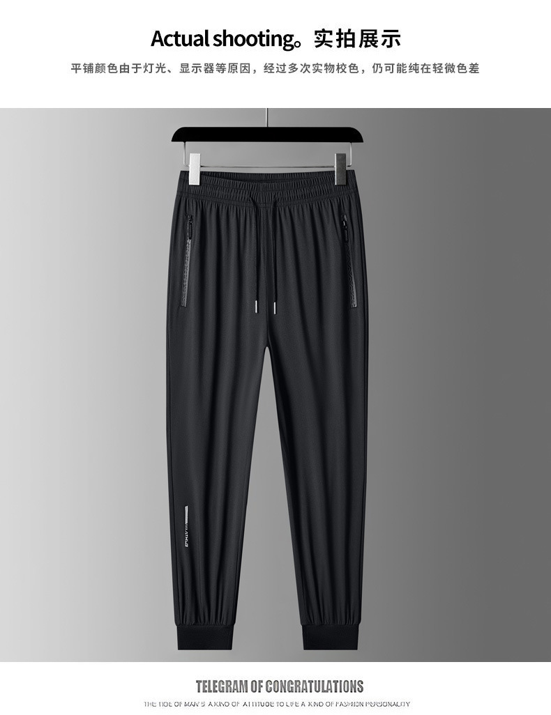 아이스 실크 바지 남자 여름 얇은 2024 새로운 유행 패션 브랜드 여름 탄성 빠른 건조 스포츠 캐주얼 바지스토어 가기