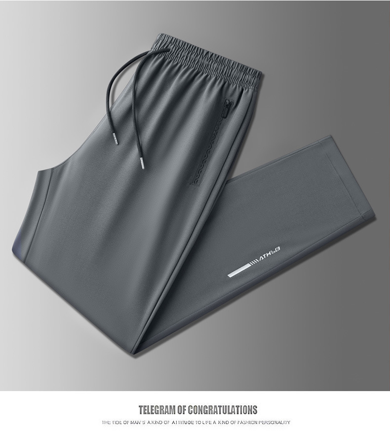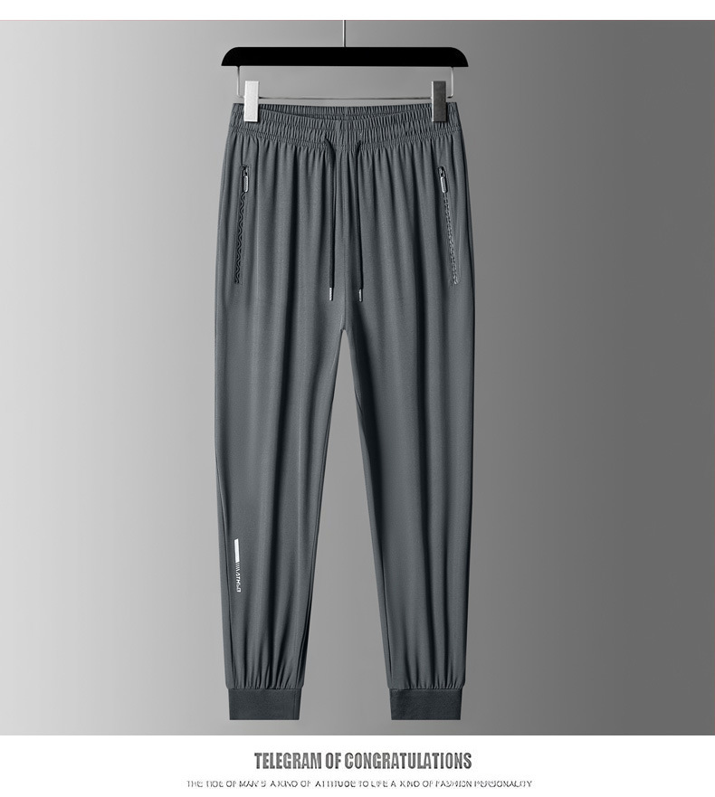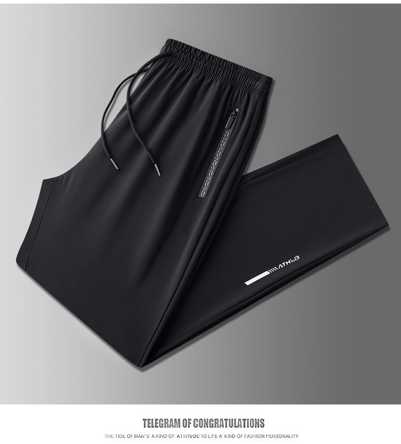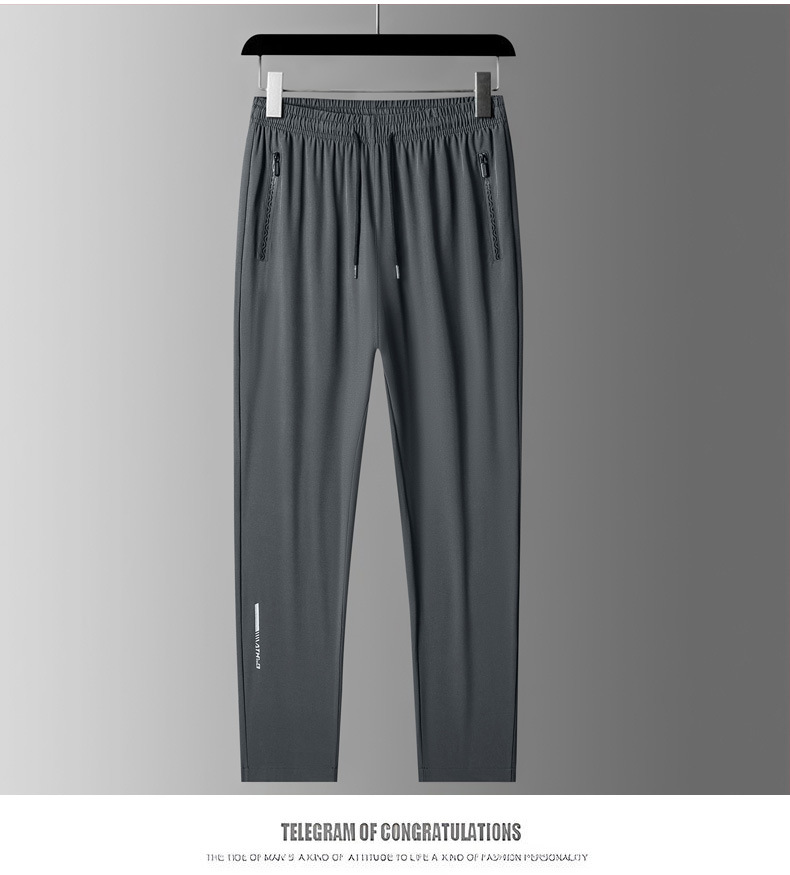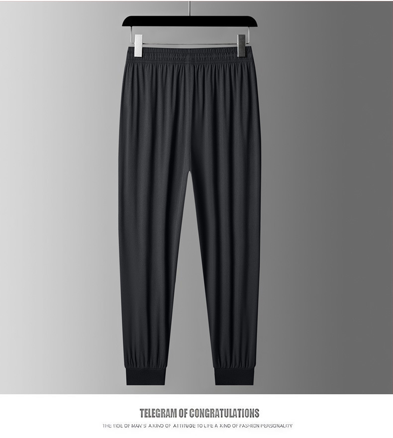 아이스 실크 바지 남자 여름 얇은 2024 새로운 유행 패션 브랜드 여름 탄성 빠른 건조 스포츠 캐주얼 바지