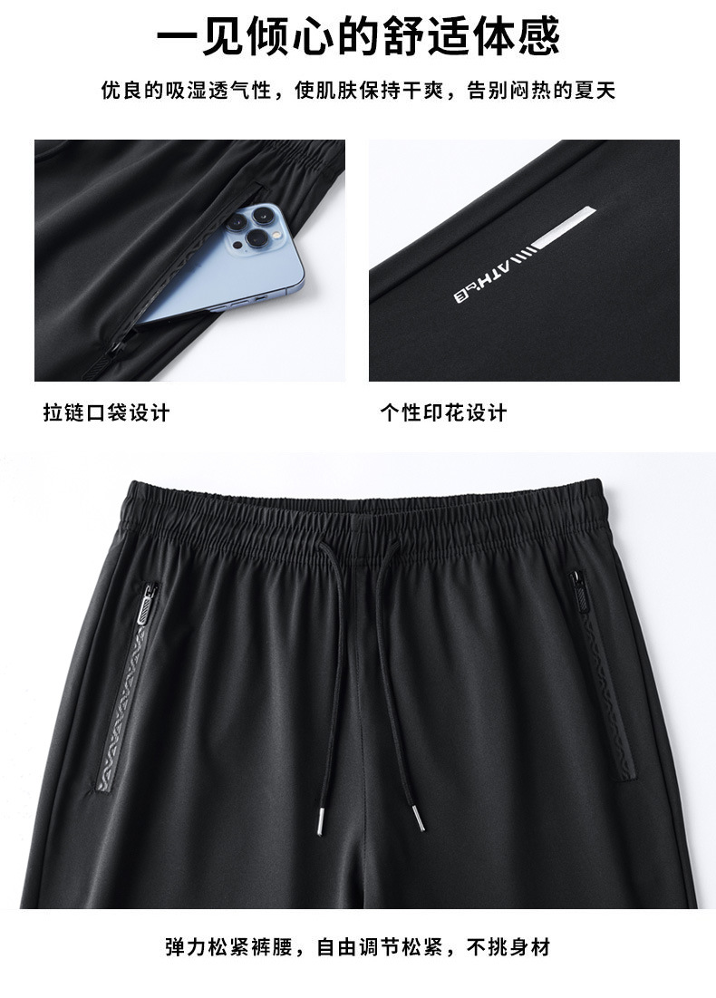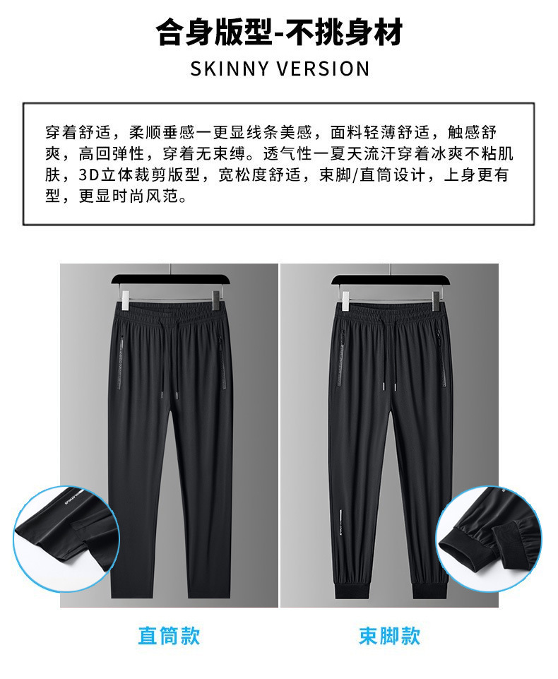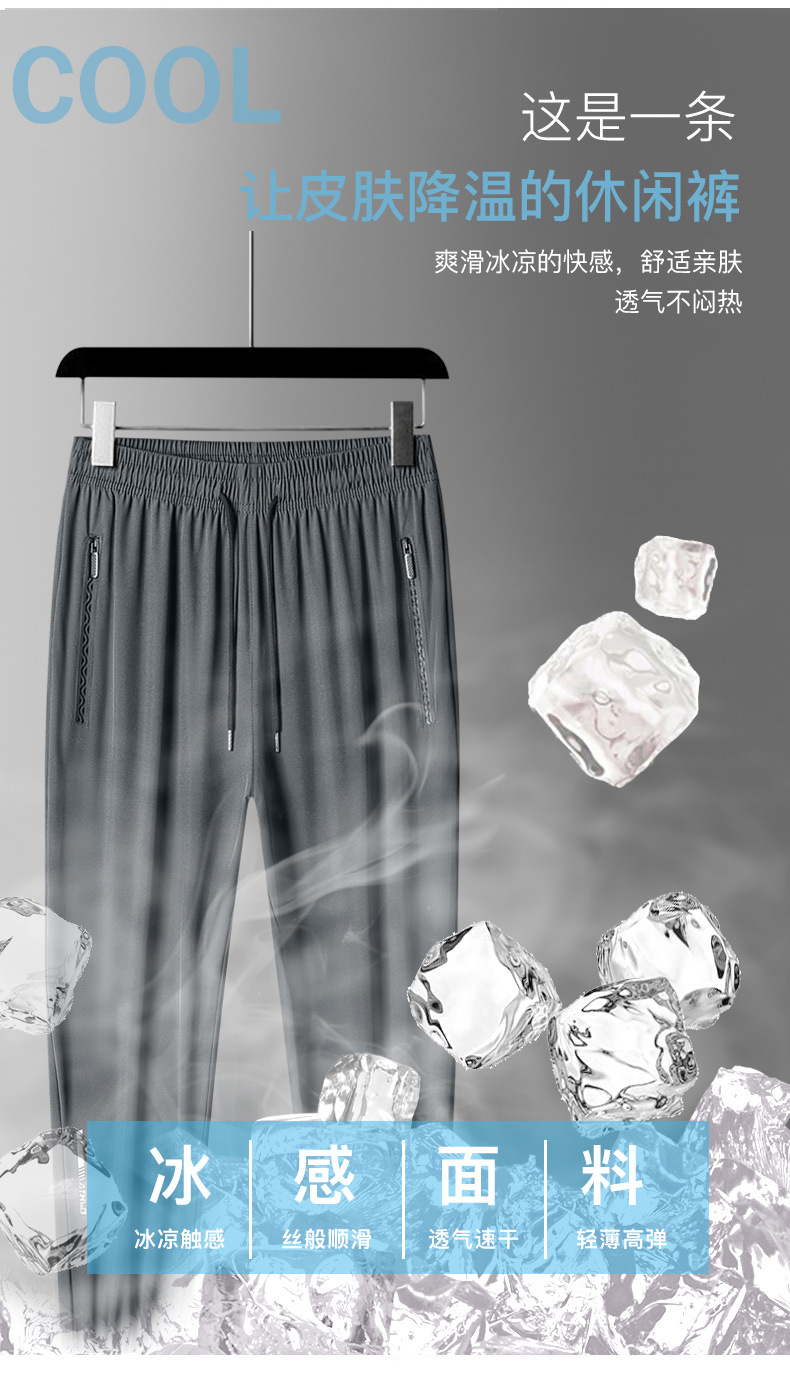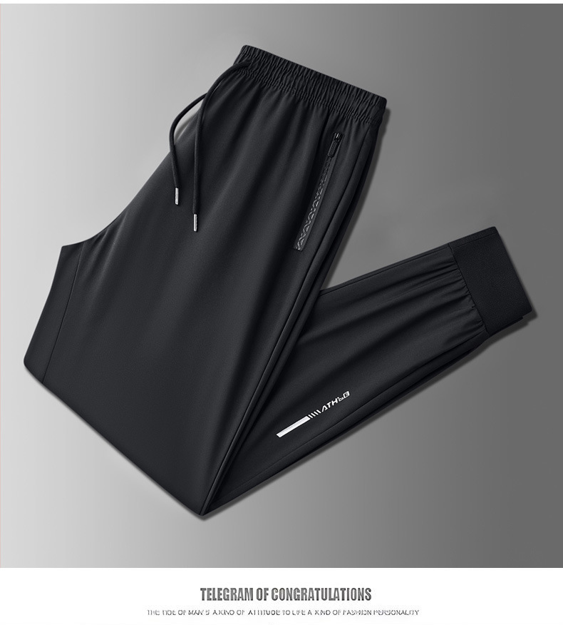 아이스 실크 바지 남자 여름 얇은 2024 새로운 유행 패션 브랜드 여름 탄성 빠른 건조 스포츠 캐주얼 바지