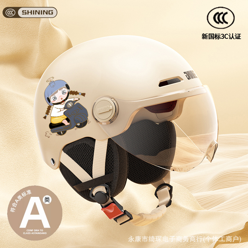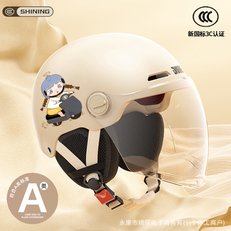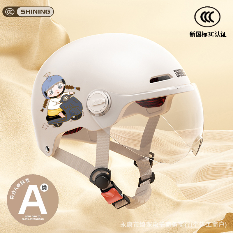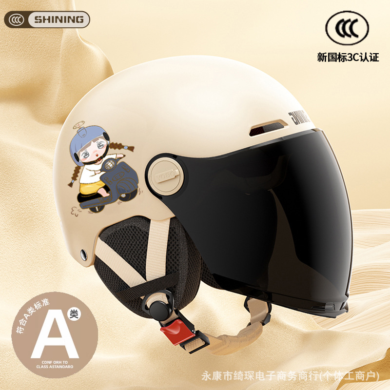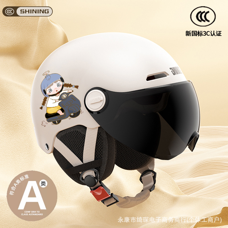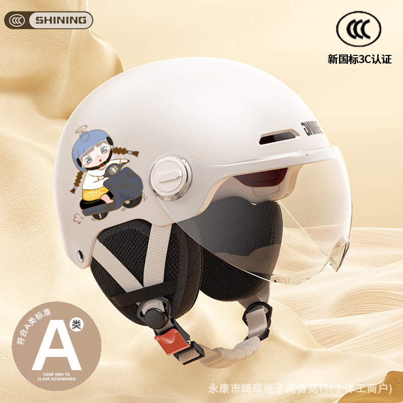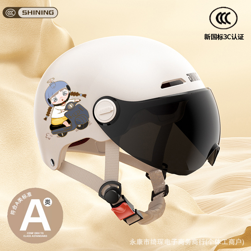 여성용 전기 자동차 헬멧, 자외선 차단, 사계절 범용, 방풍, 방한 및 충돌 방지 헬멧, 3C 인증스토어 가기