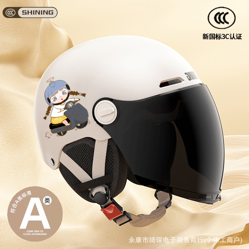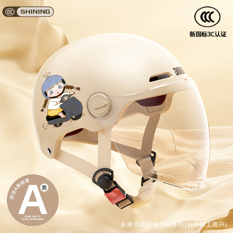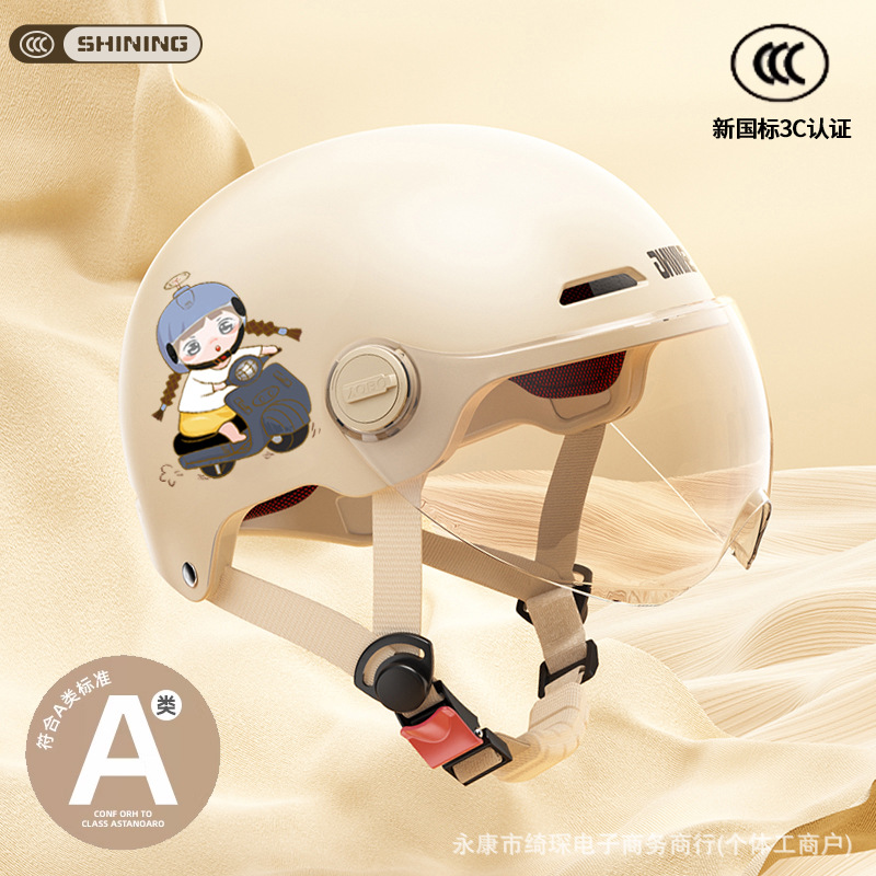 여성용 전기 자동차 헬멧, 자외선 차단, 사계절 범용, 방풍, 방한 및 충돌 방지 헬멧, 3C 인증