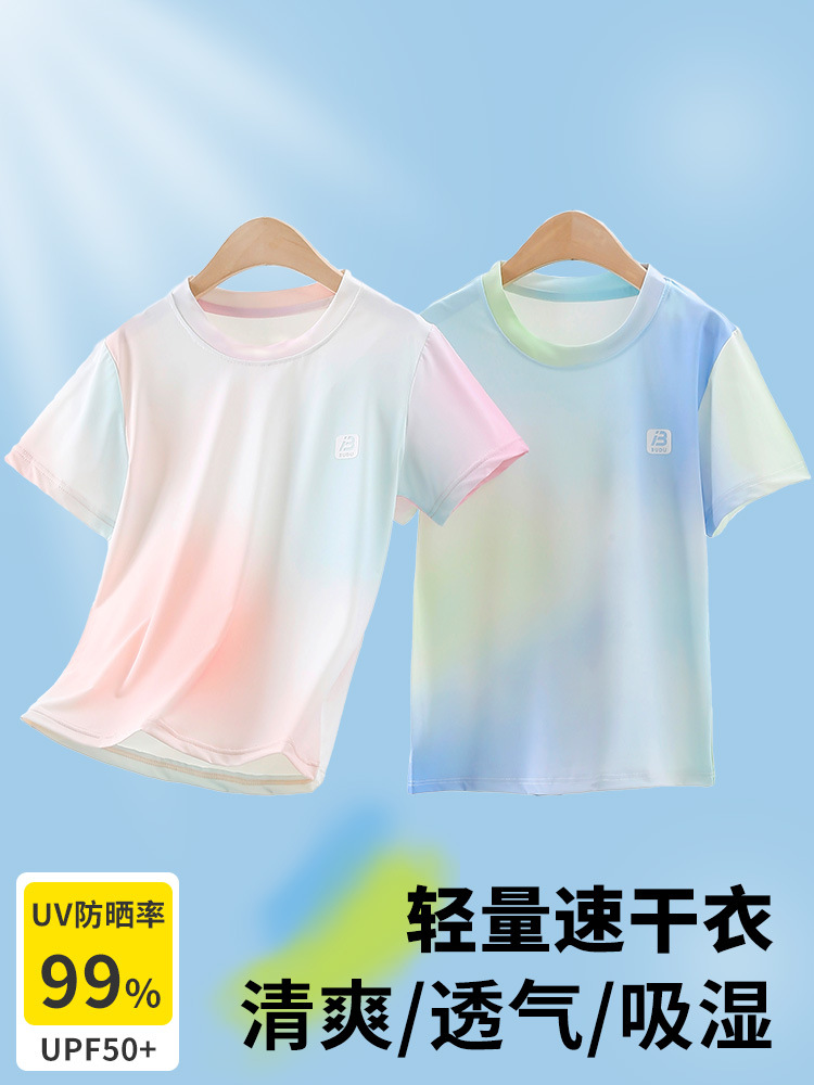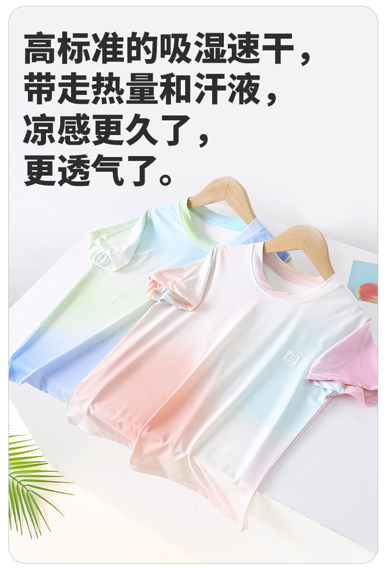 어린이 여름 빠른 건조 티셔츠 소년 소녀 반팔 아이스 라이트급 스포츠 톱 2025 뉴 라운드 넥 아동복스토어 가기