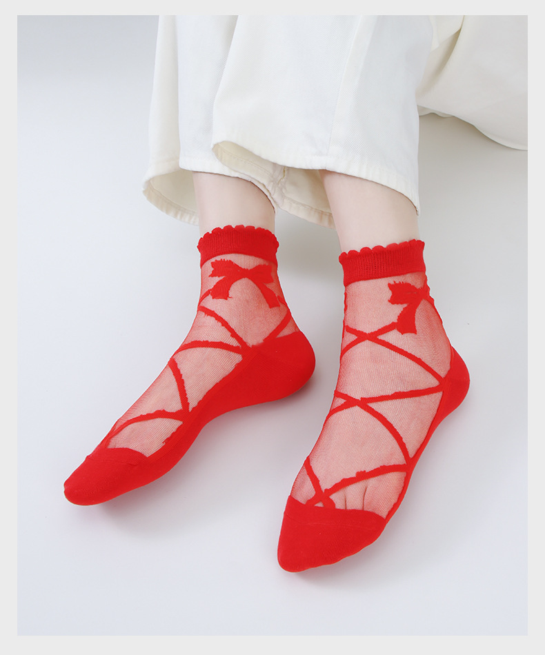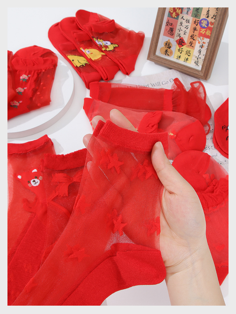 봄과 여름 빨간 양말 여성 출생 년 붉은 스타킹 탈취제 땀 흡수성 면화 바닥 스타킹 결혼식 축제 빨간 양말 Haining